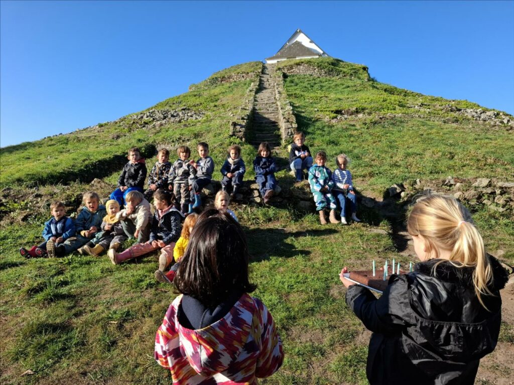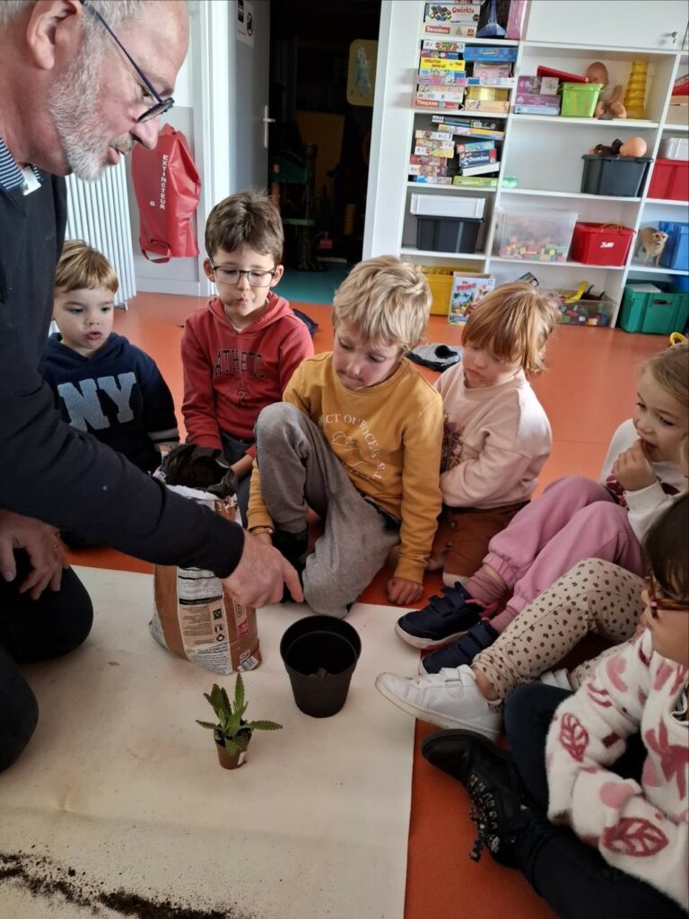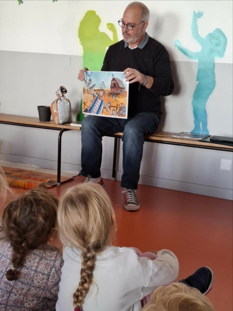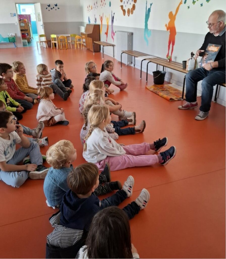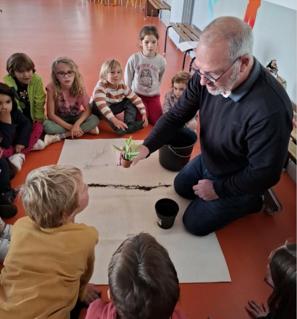 Nous avons également eu la chance d’accueillir un auteur: Lionel Lamour. Nous avons découvert les aventures de Gaspard l’épouvantail au fil des saisons. A la fin de la séance, il nous a remis une plante. Nous l’avons nommée Micheline, notre châtaignier en classe s’appelant déjà Michel.