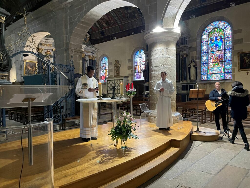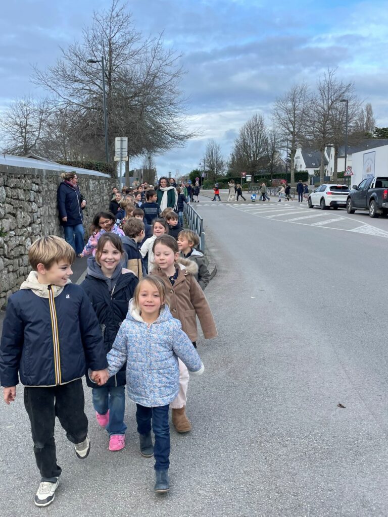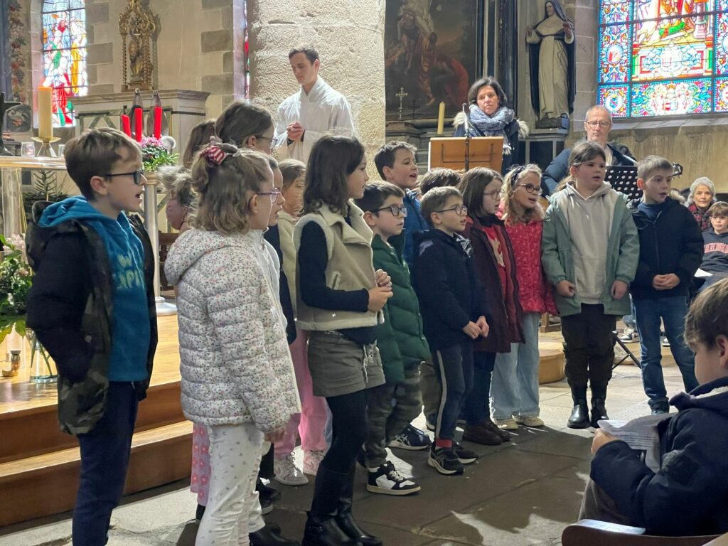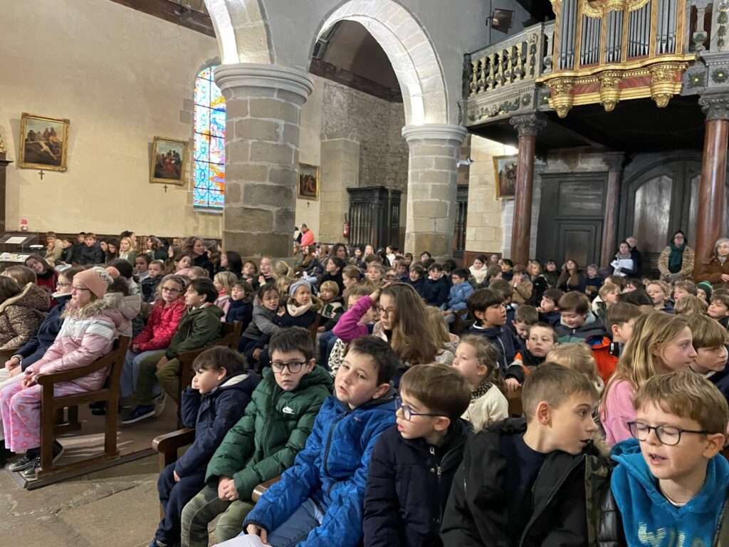Aujourd’hui, toute l’école s’est rendue à l’église pour la célébration de noël par le père Marco. Les collégiens nous ont également rejoints. Les CB2 ont interprété douce nuit en breton, un grand bravo à eux! Nous sommes allés voir la crèche avant de retourner à l’école.