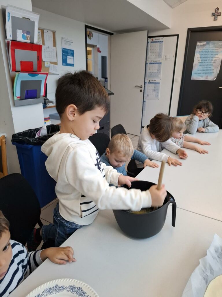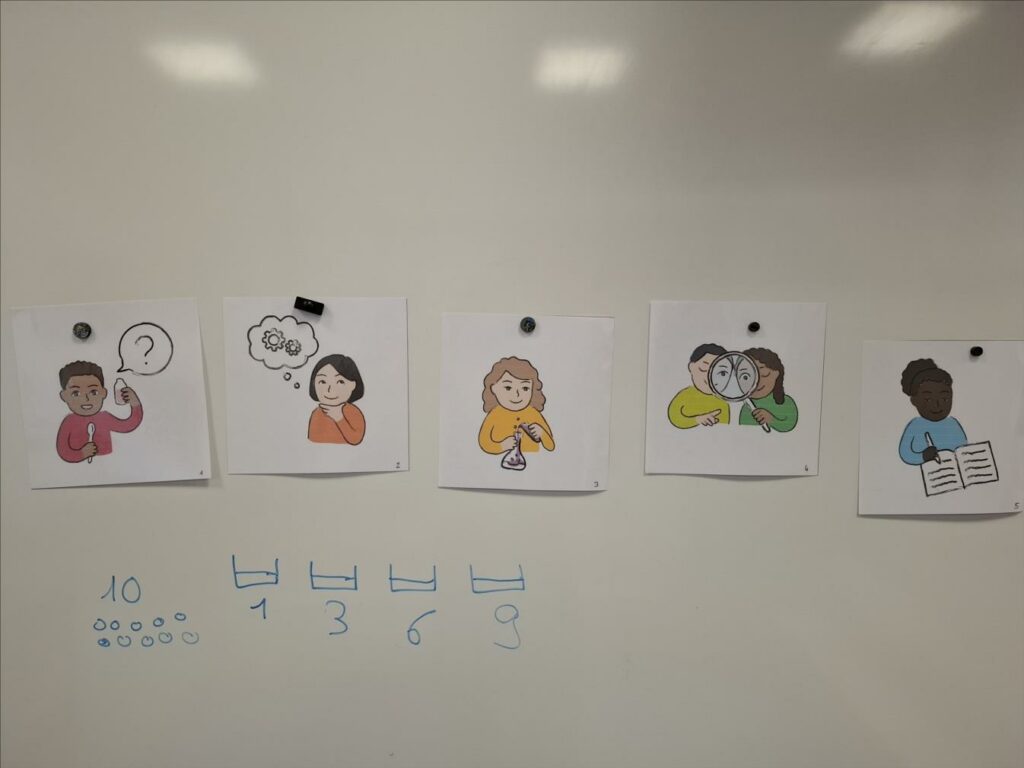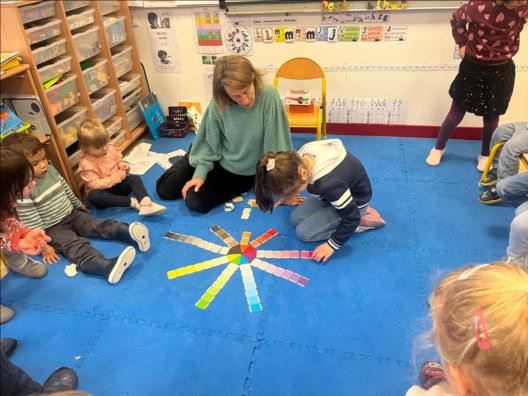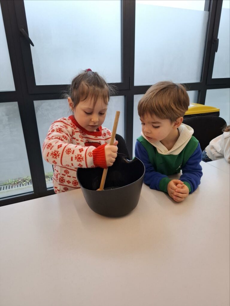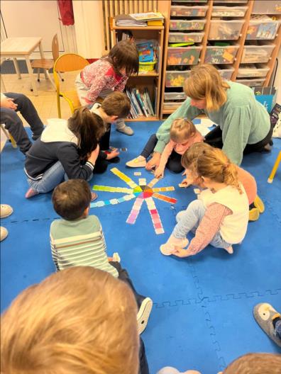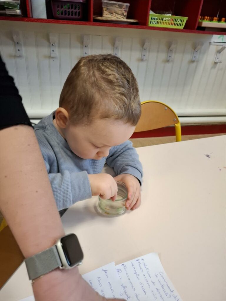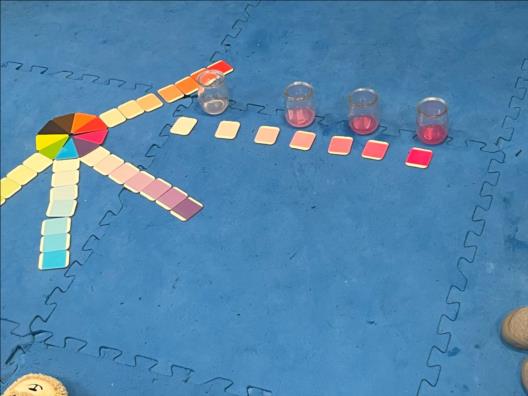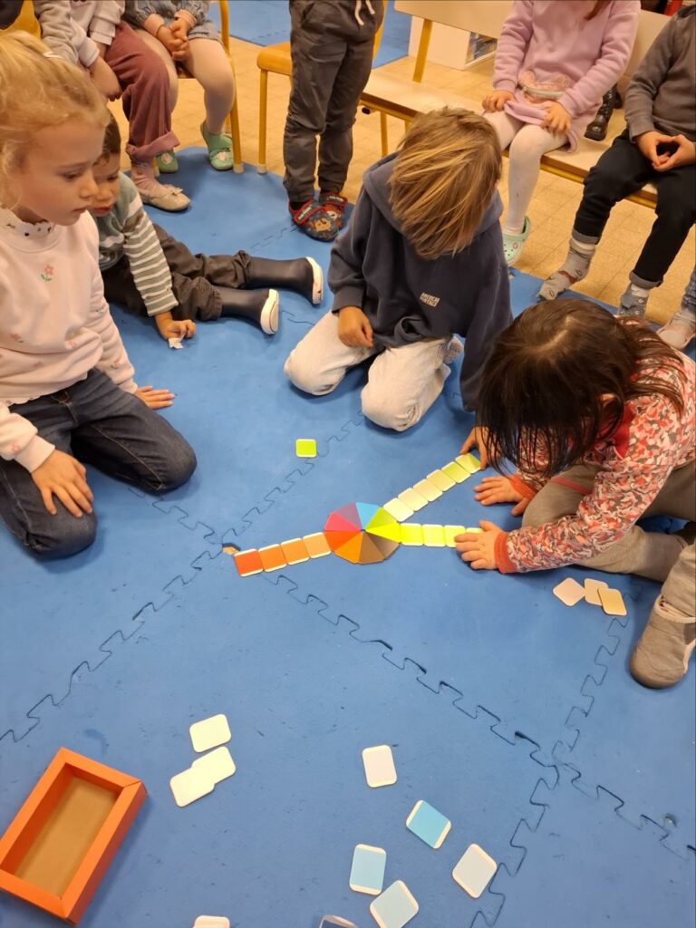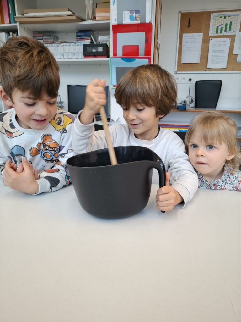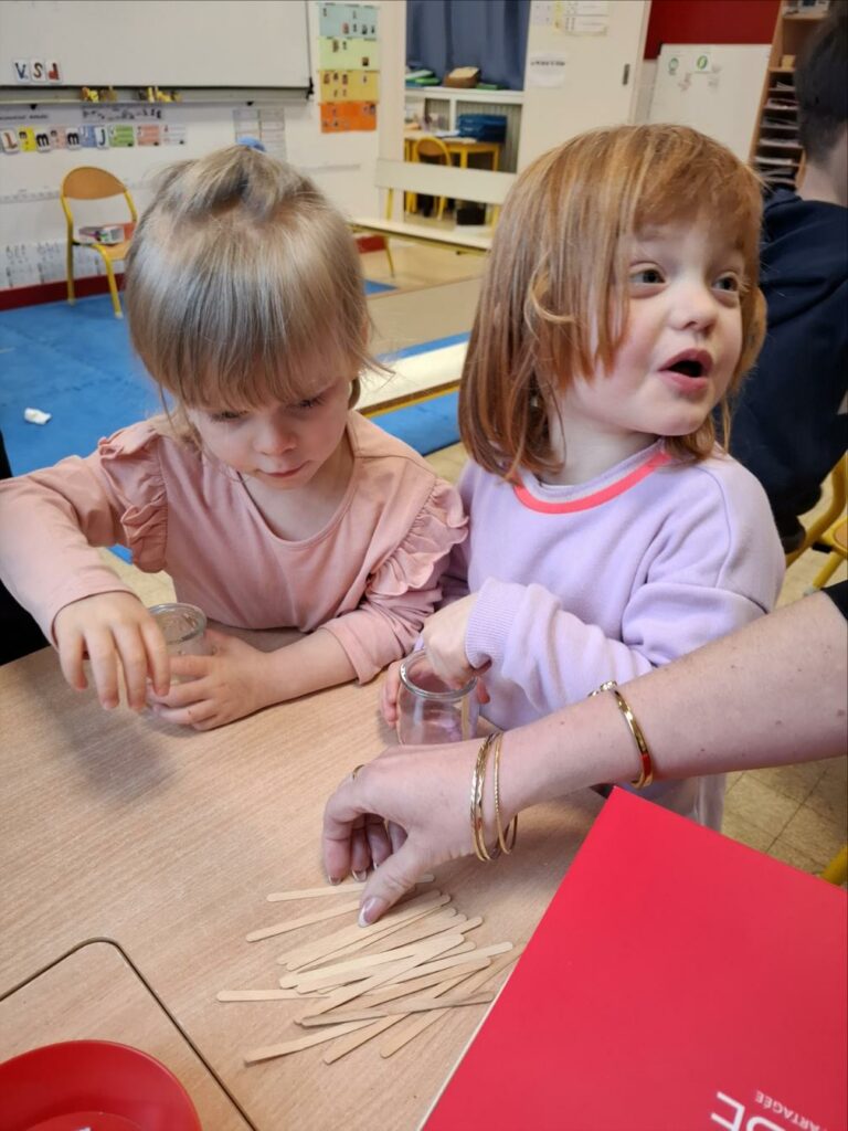 Skiantoù: cette semaine notre matinée de sciences a été consacrée à la conception d’une échelle de teinte. Lors de la dernière séance, nous avons découvert que la matière pouvait se dissoudre dans l’eau. Cette fois-ci, les élèves devaient suivre un protocole, par groupe, afin de concevoir 4 eaux colorées de teintes différentes à partir de bonbons d’une seule couleur: