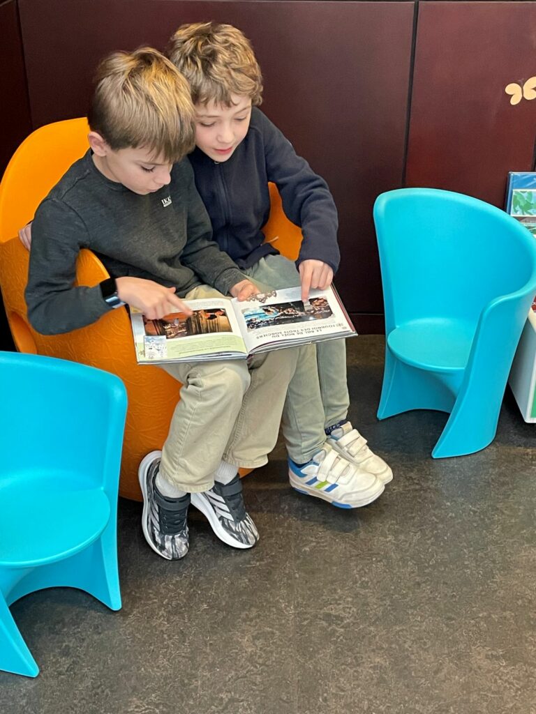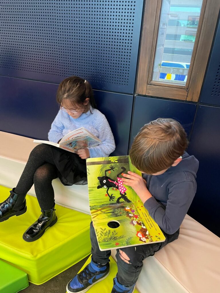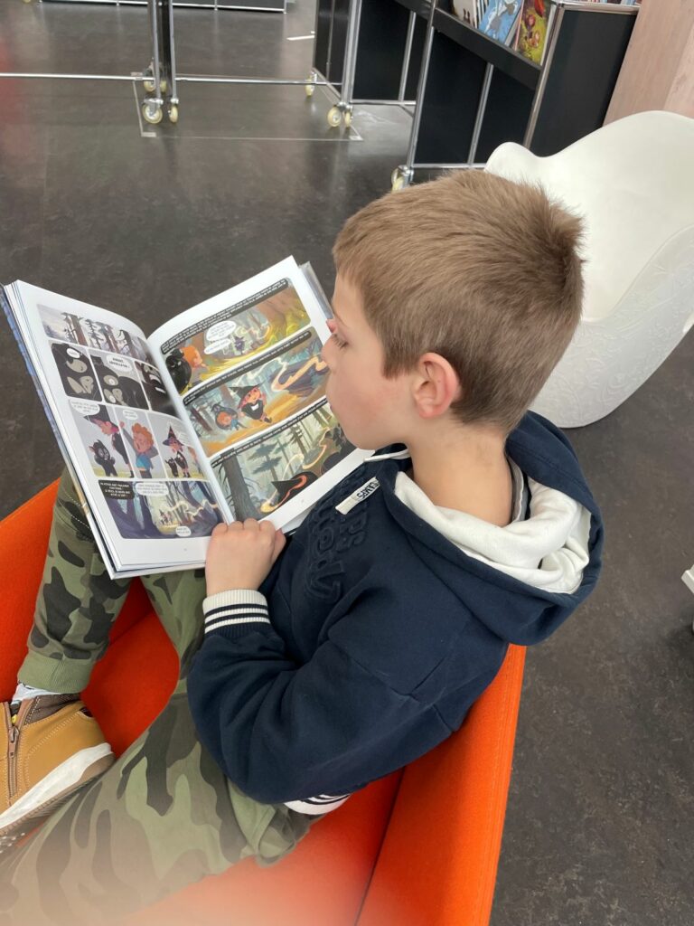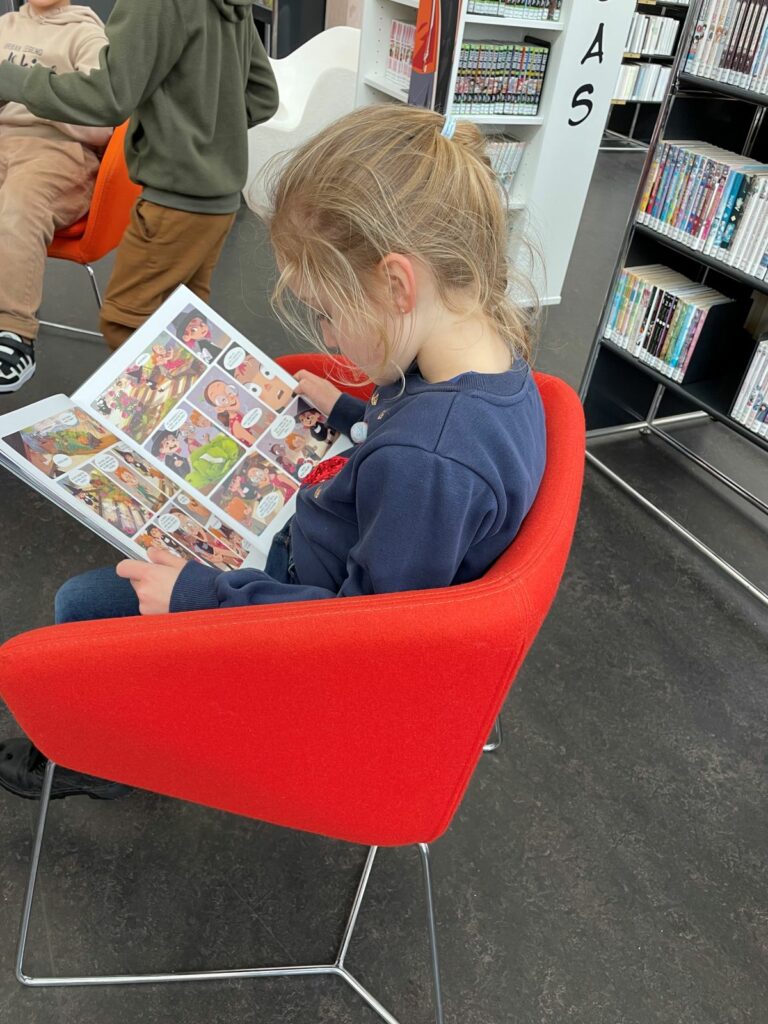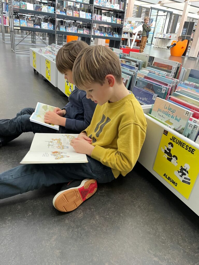 Médiathèque en CP-CE1 Auteur/autrice de la publication :Claire Chuberre Publication publiée :23 janvier 2026 Post category:CP - CE1 Cet après-midi, nous nous sommes rendus à la médiathèque pour notre deuxième séance d’emprunt. Nous avons déambulé dans les rayons à la recherche de notre livre fétiche. Puis nous nous sommes installés confortablement pour commencer à lire. Vous devriez également aimer Création « up cycling » 11 novembre 2022 Rugby en GS CP 27 mai 2022 Journée de la langue bretonne en GS CP 23 mars 2024