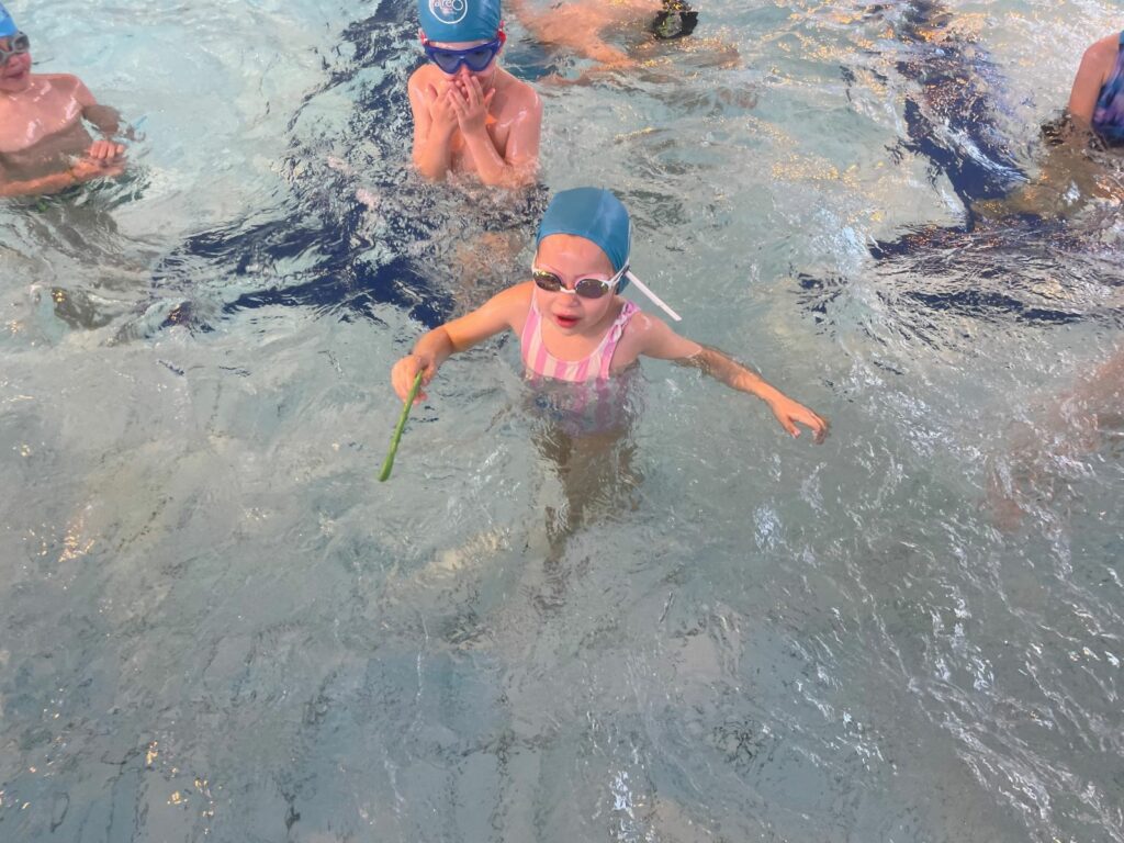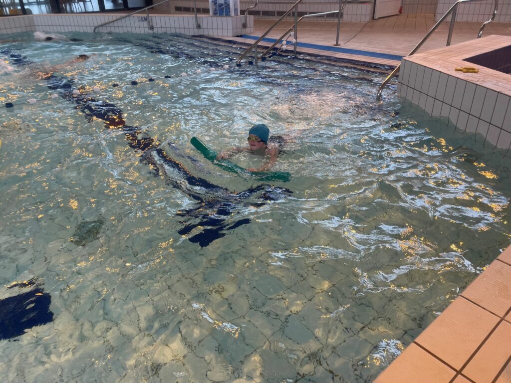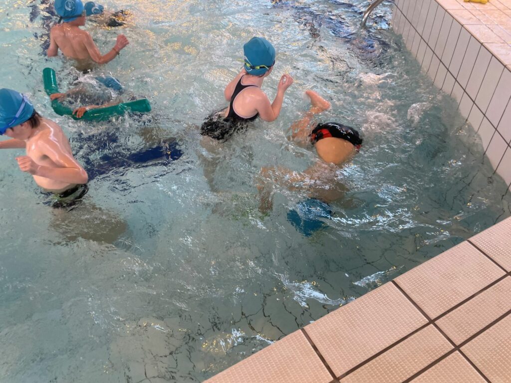 Mardi, nous nous sommes rendus à la piscine pour notre deuxième séance. Nous avons travaillé nos déplacements dans l’eau, notamment en immersion ; nous prenons peu à peu de plus en plus confiance.