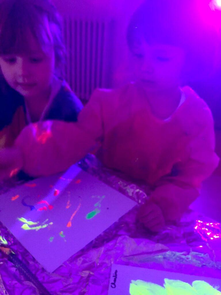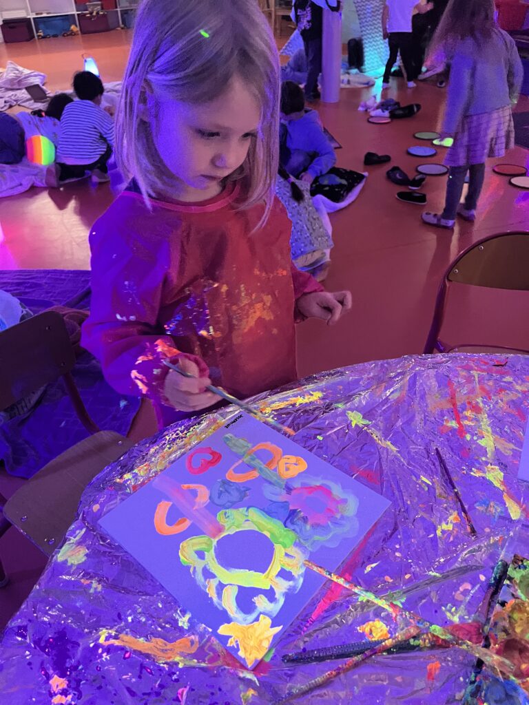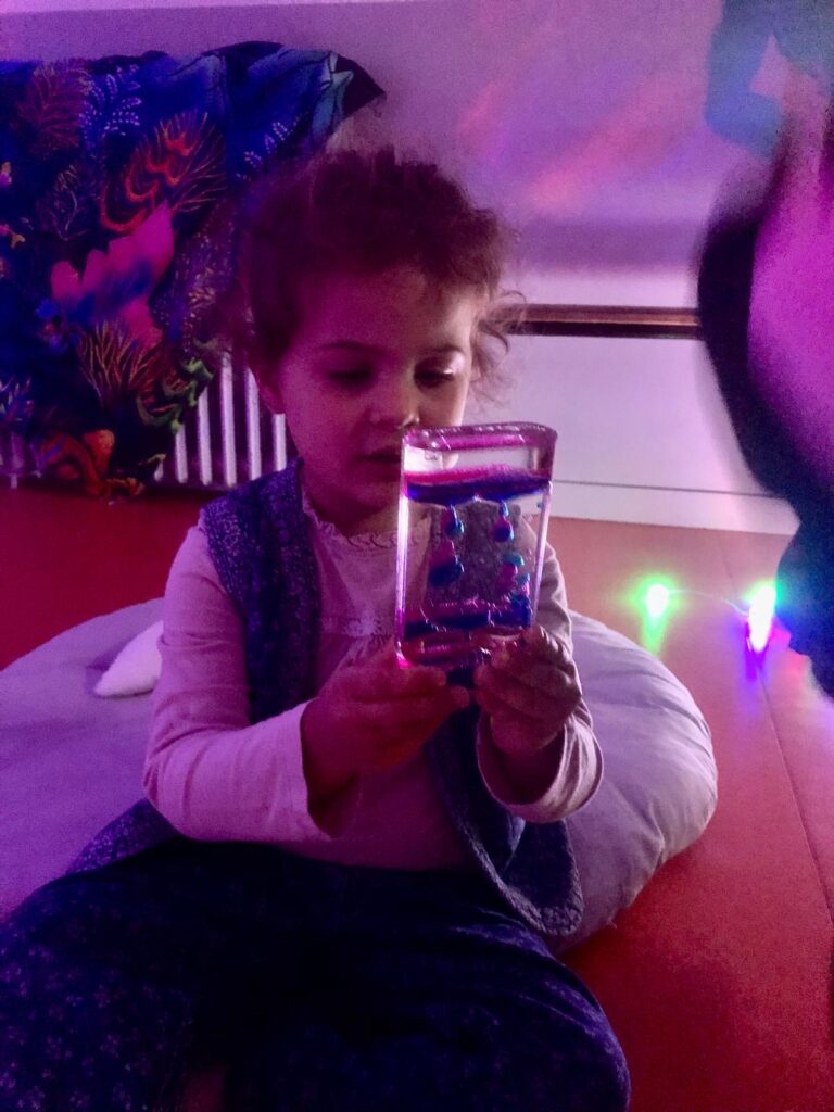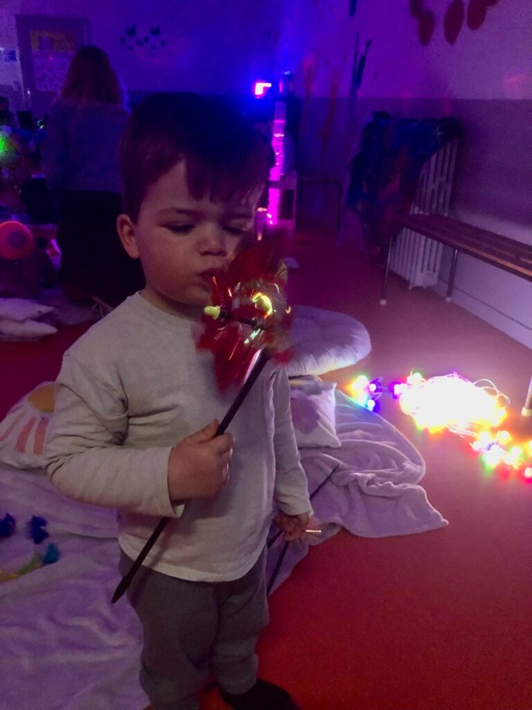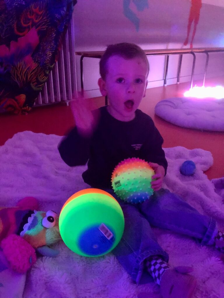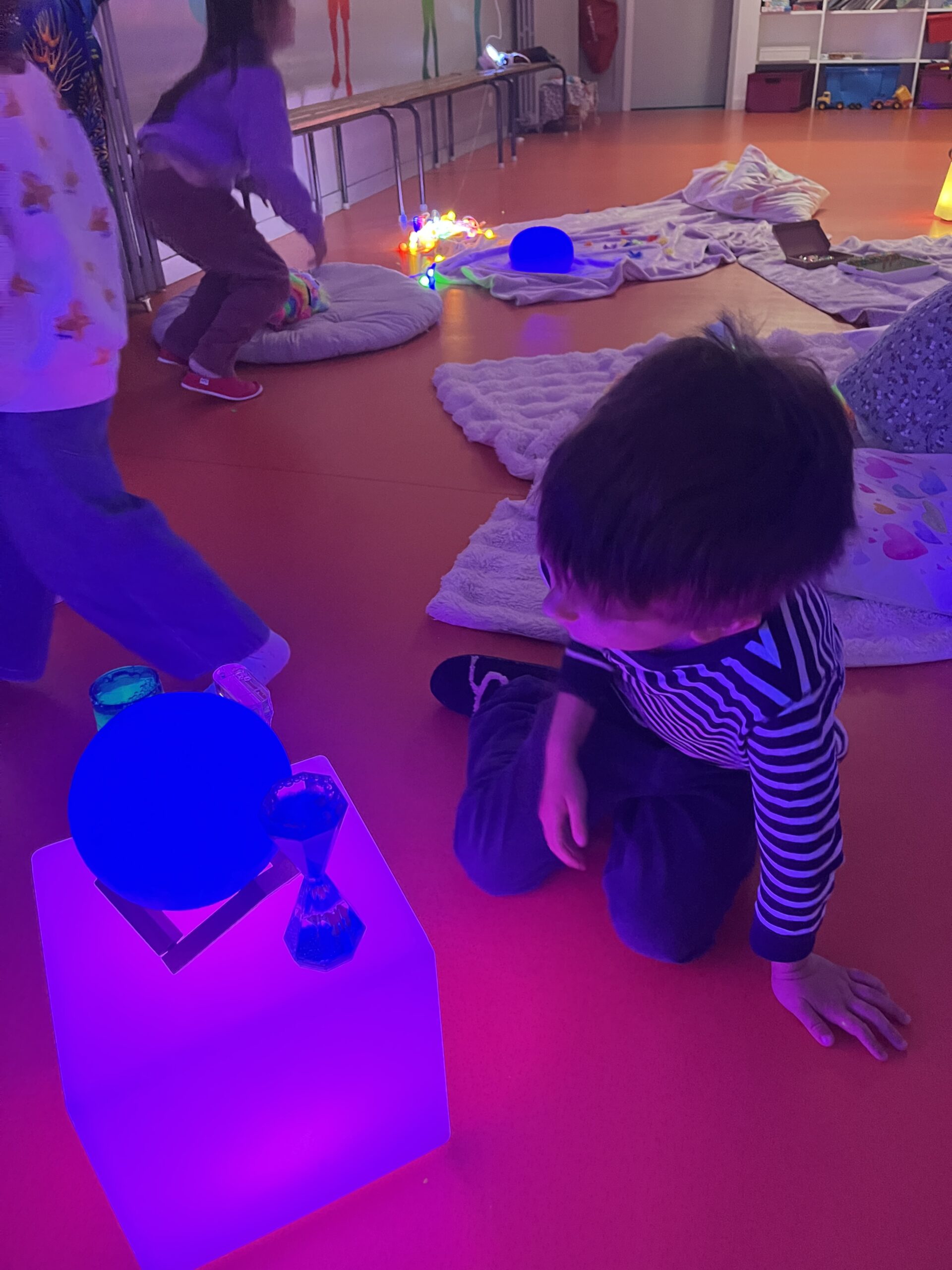 Aurore Jobard nous a proposé vendredi 10 avril un voyage sensoriel rempli de calme, de douceur et d’écoute. Dans un espace rempli de lumières fluorescentes nous avons pu explorer nos 5 sens. Merci Aurore pour ce moment magique que tu nous as permis de vivre avec nos copains.