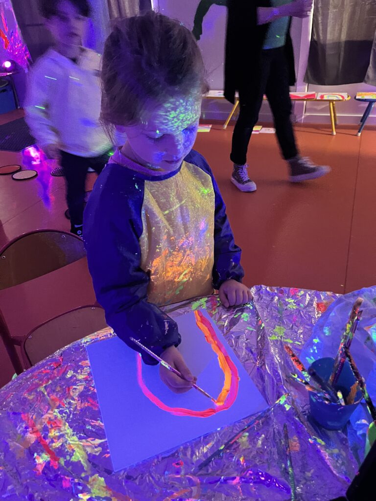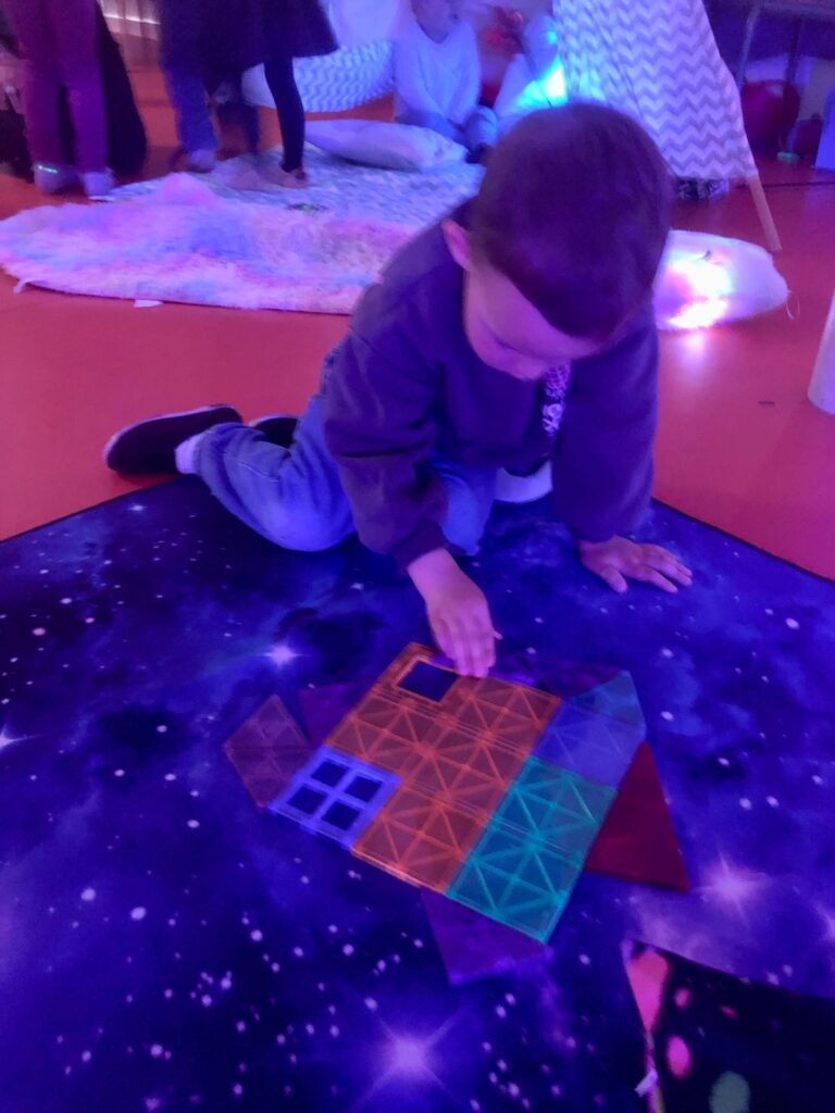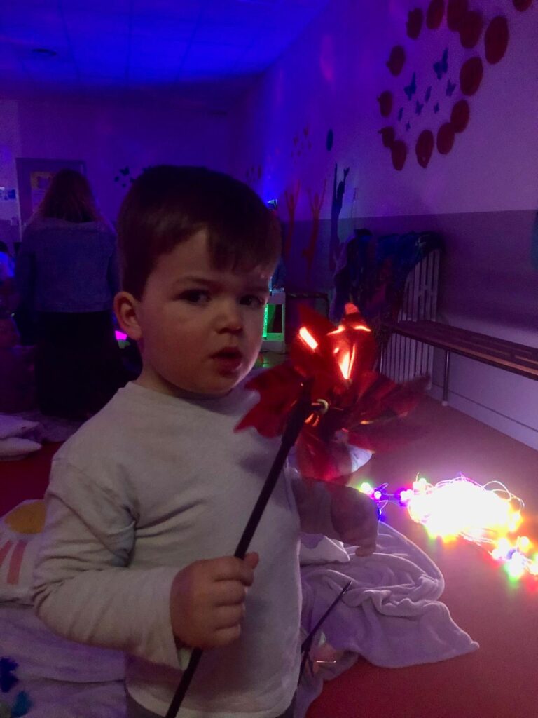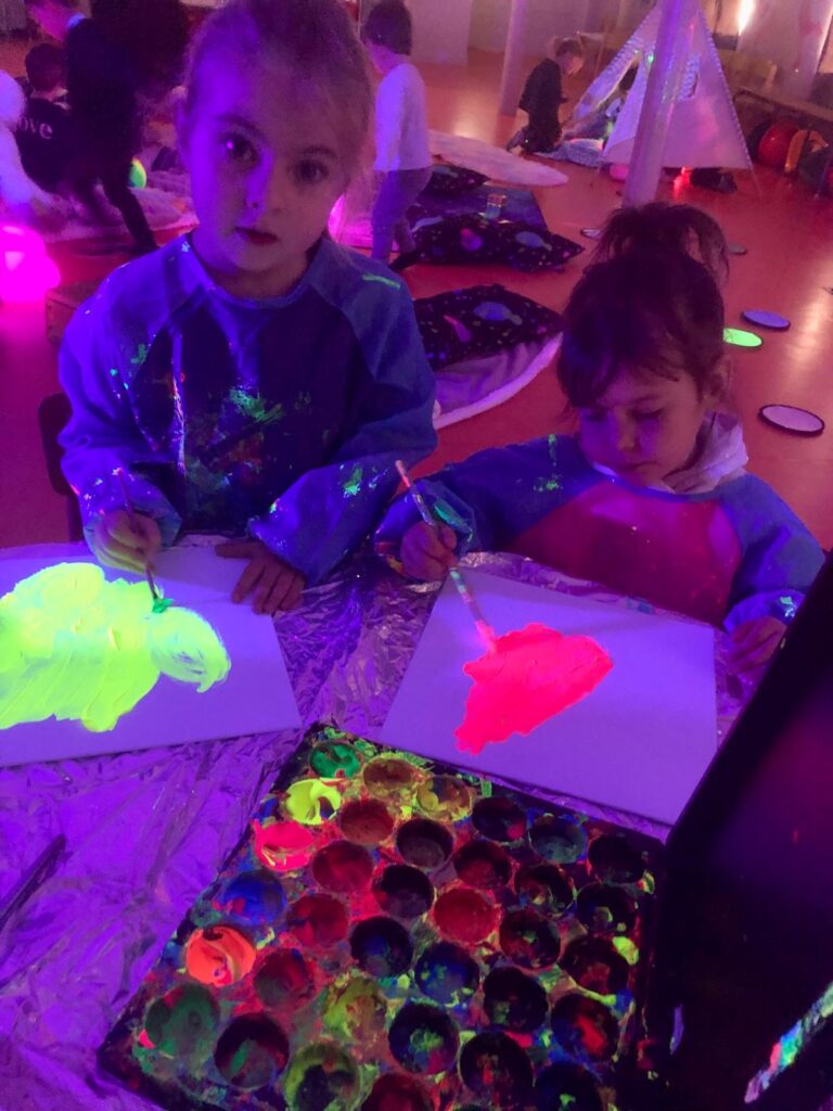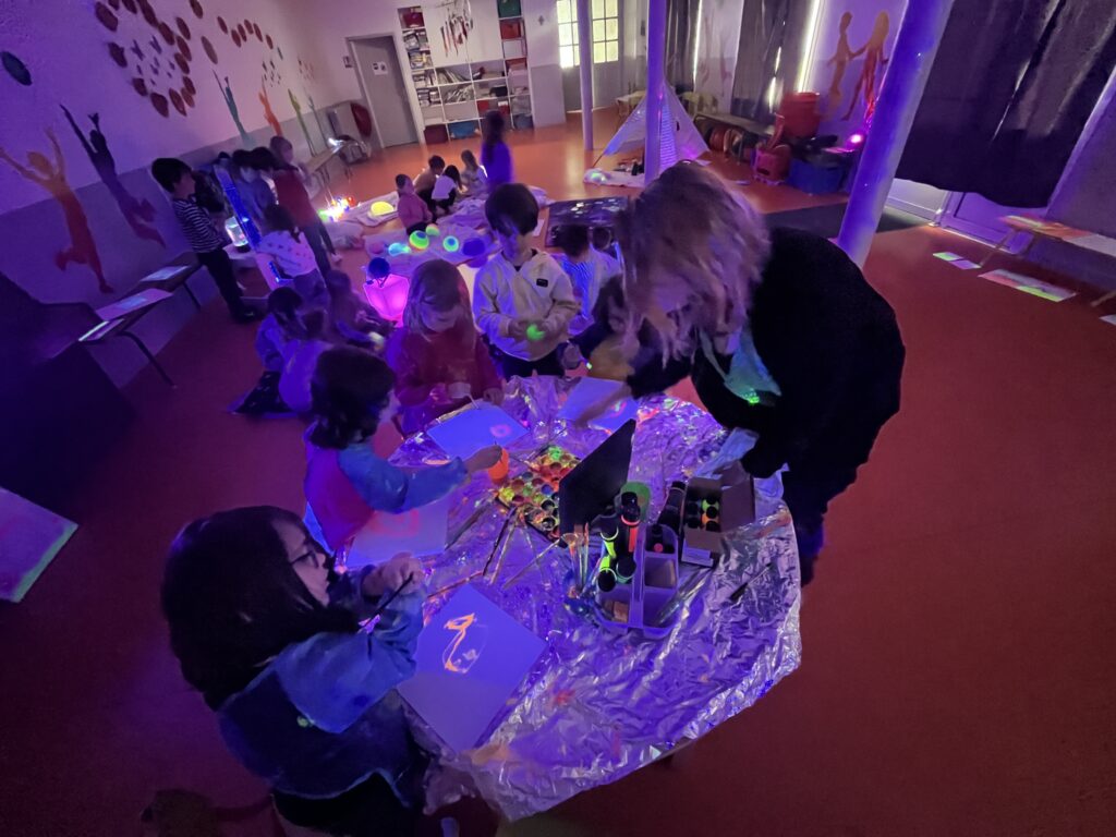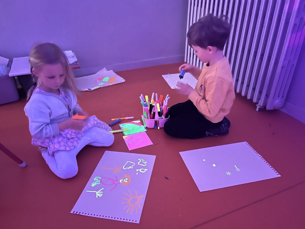 Aurore Jobard nous a proposé vendredi 10 avril un voyage sensoriel rempli de calme, de douceur et d’écoute. Dans un espace rempli de lumières fluorescentes nous avons pu explorer nos 5 sens. Merci Aurore pour ce moment magique que tu nous as permis de vivre avec nos copains.