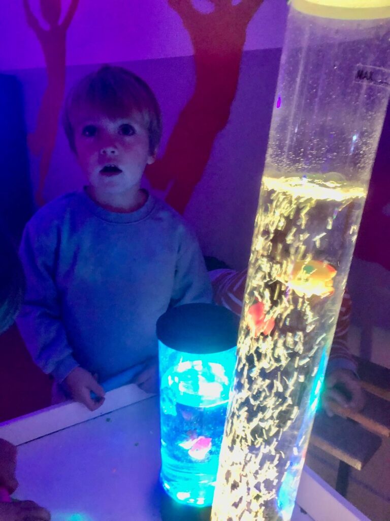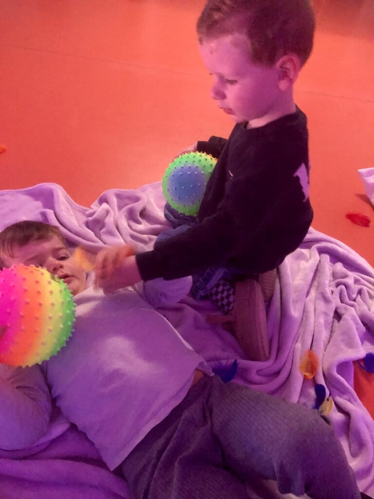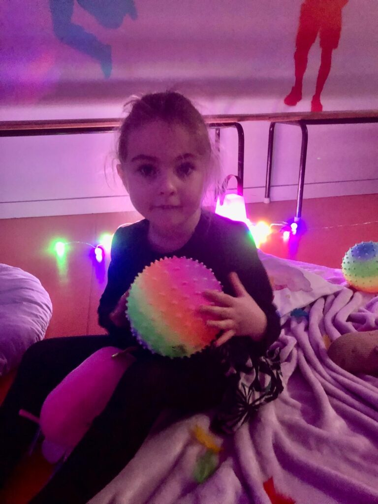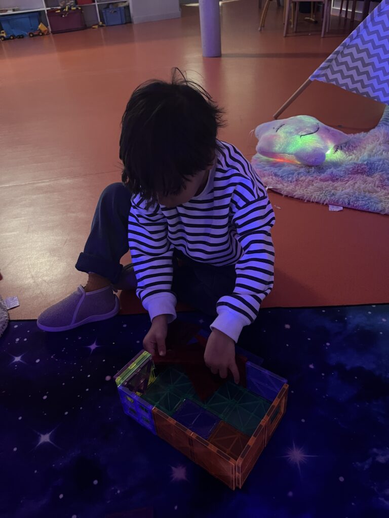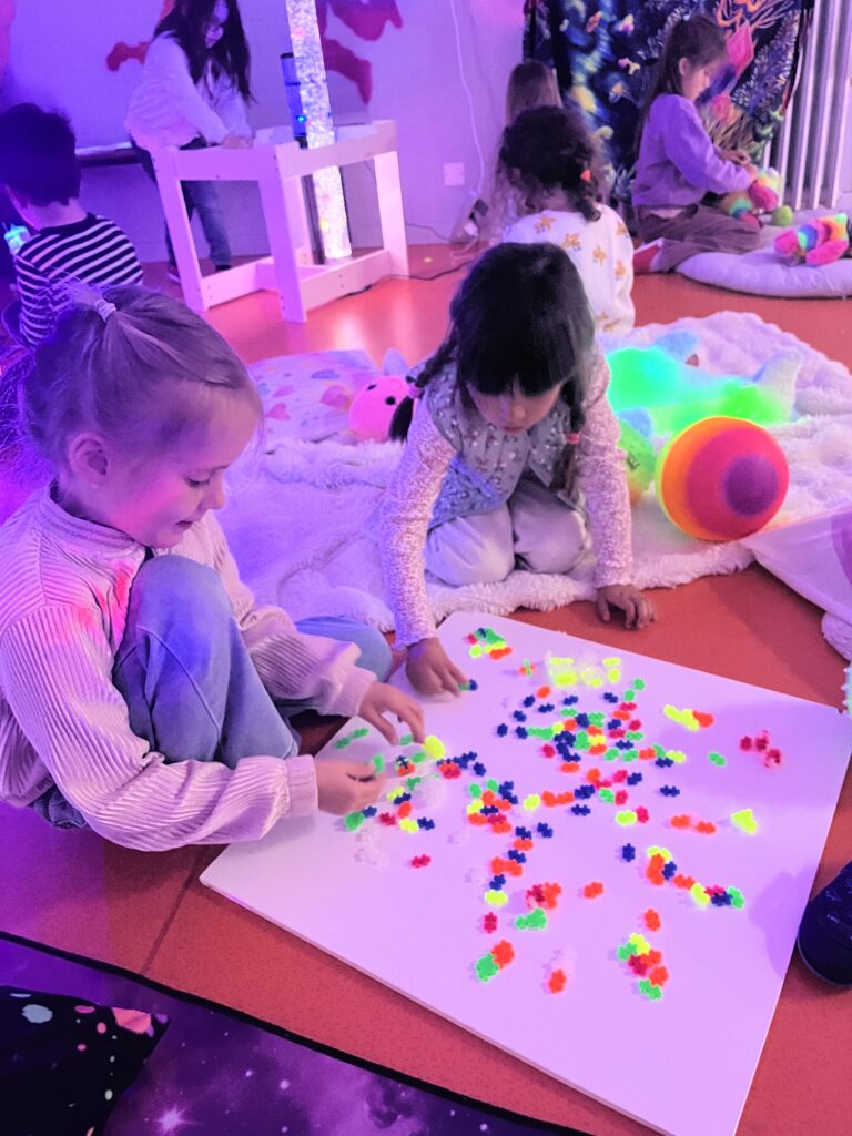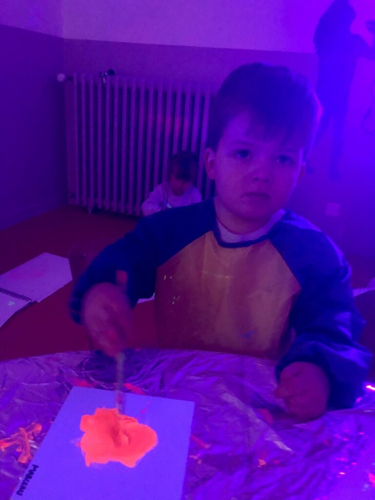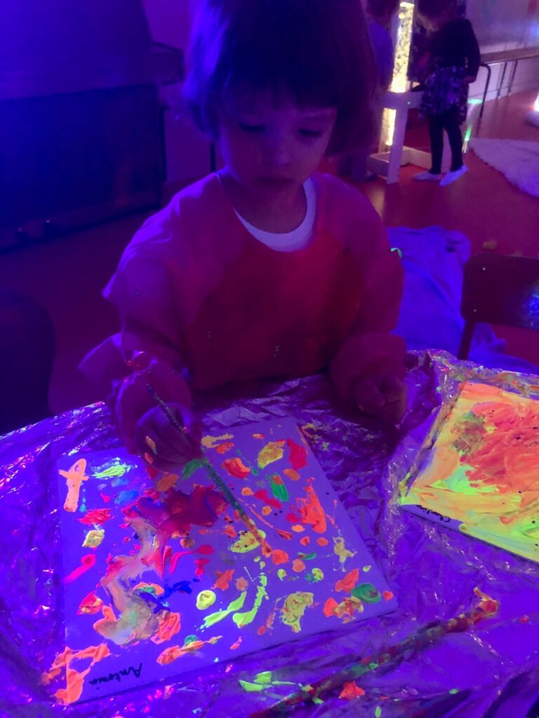 Aurore Jobard nous a proposé vendredi 10 avril un voyage sensoriel rempli de calme, de douceur et d’écoute. Dans un espace rempli de lumières fluorescentes nous avons pu explorer nos 5 sens. Merci Aurore pour ce moment magique que tu nous as permis de vivre avec nos copains.