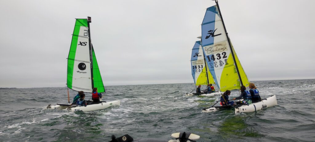 Voici quelques photos des 2 dernières séances de voile qui ont lieu le vendredi matin pour les CM1/CM2. Une séance sans vent où nous avons fait du paddle et une séance avec vent où nous avons fait du catamaran qui est le support que nous utilisons à chaque séance.