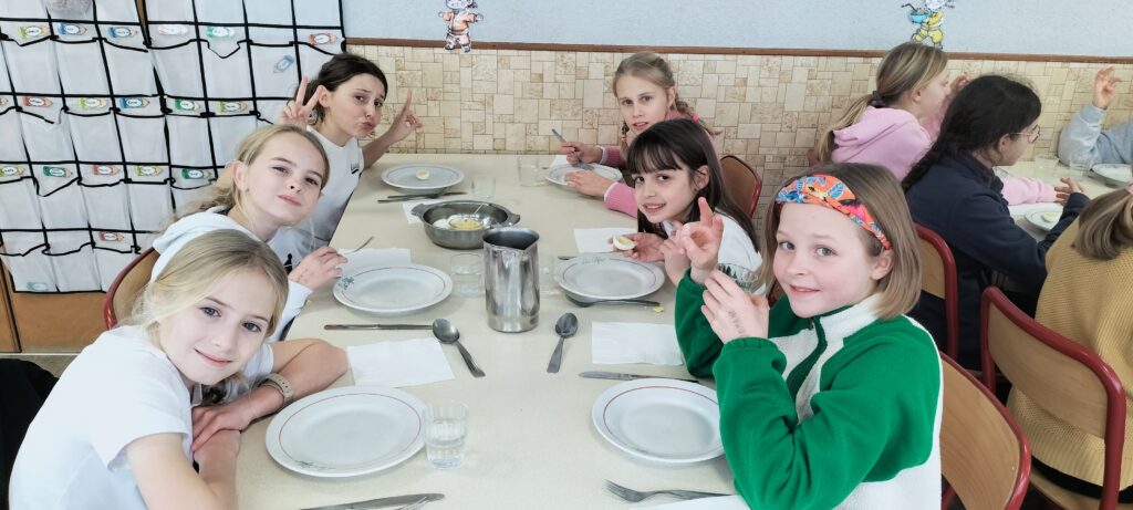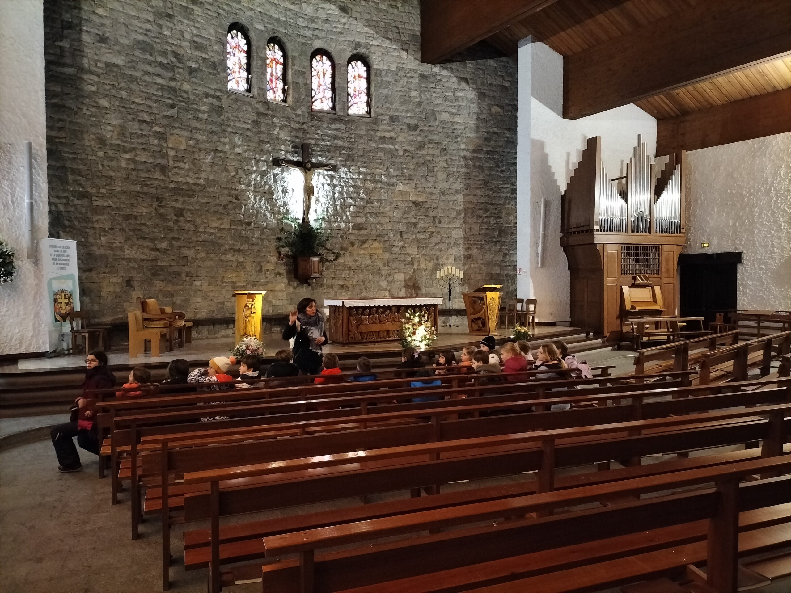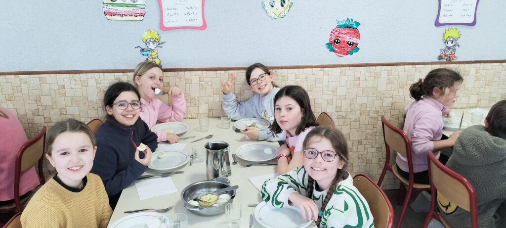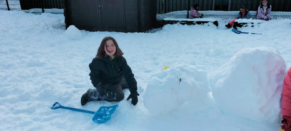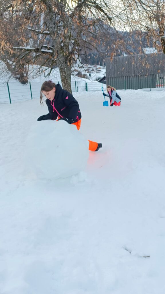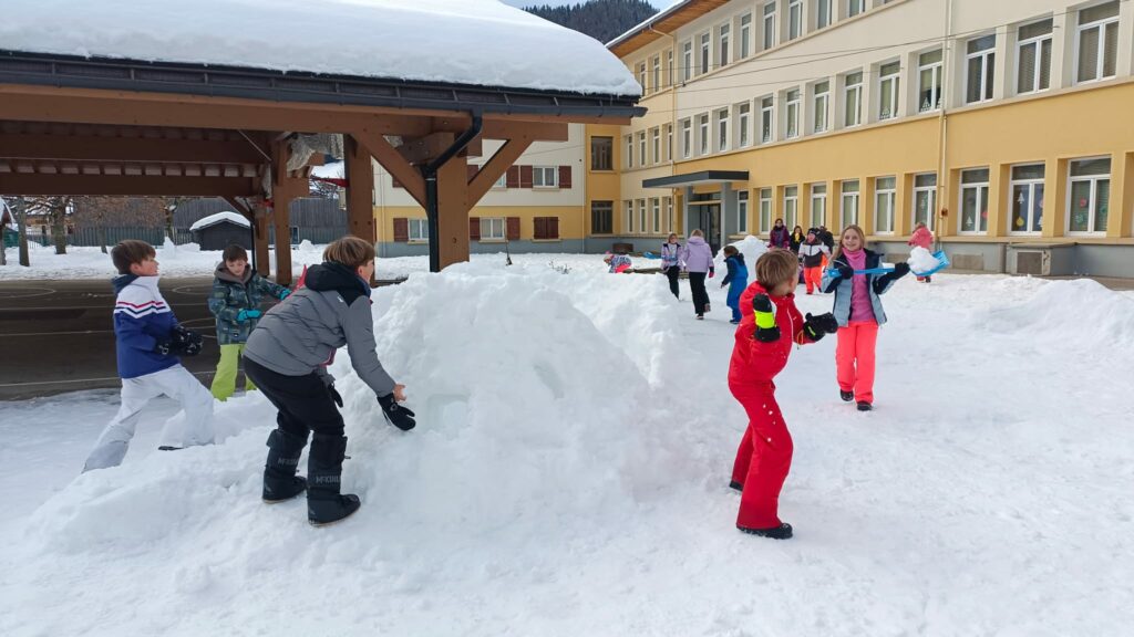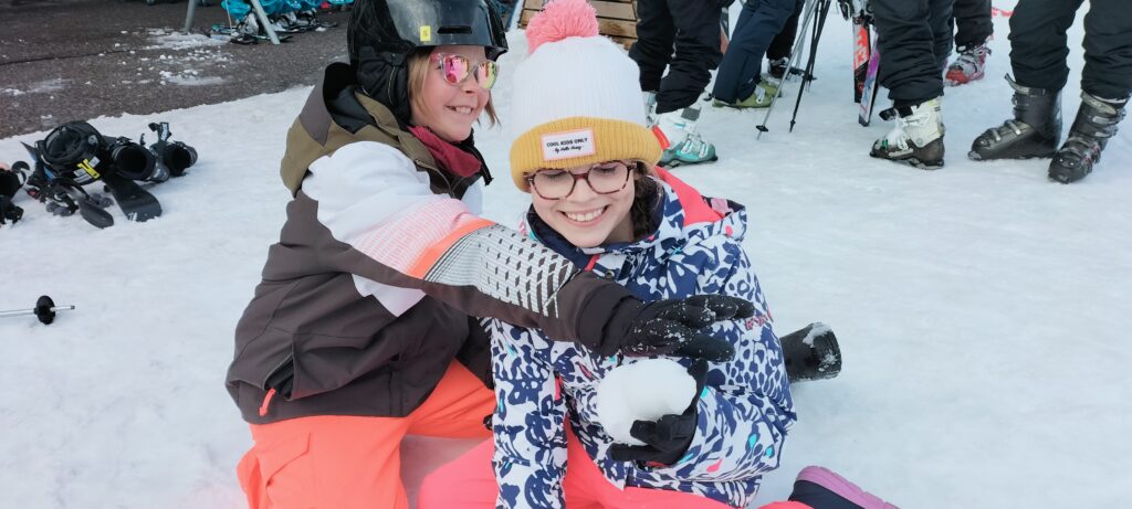 Nous sommes bien arrivés à la Clusaz. Dès notre réveil, nous avons découvert un paysage enneigé. Après avoir monté nos valises dans les chambres, nous avons apprécié un bon petit déjeuner. Ensuite, nous avons visionné un film sur la montagne dans une salle immersive. C’était trop stylé ! Après le déjeuner, nous sommes allés récupérer notre matériel de ski (casques, chaussures, bâtons et skis). Puis, nous nous sommes promenés dans le village de la Clusaz où nous avons visité une très belle église moderne. Nous avons terminé la journée par une gigantesque bataille de boules de neige. Ici les enfants fabriquent des igloos dans la neige. Nous avons pu jouer à l’intérieur. À demain pour de nouvelles aventures !
