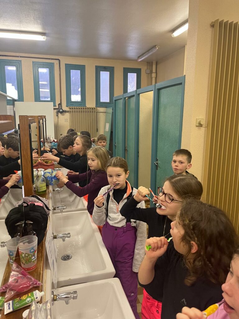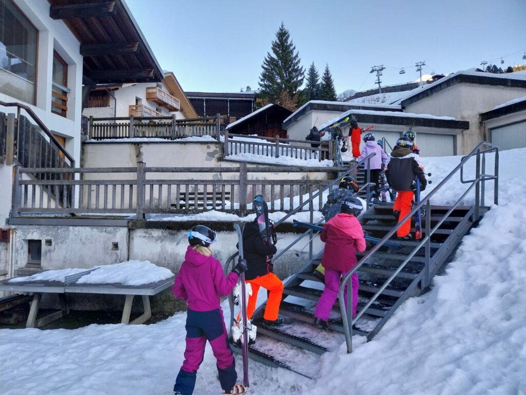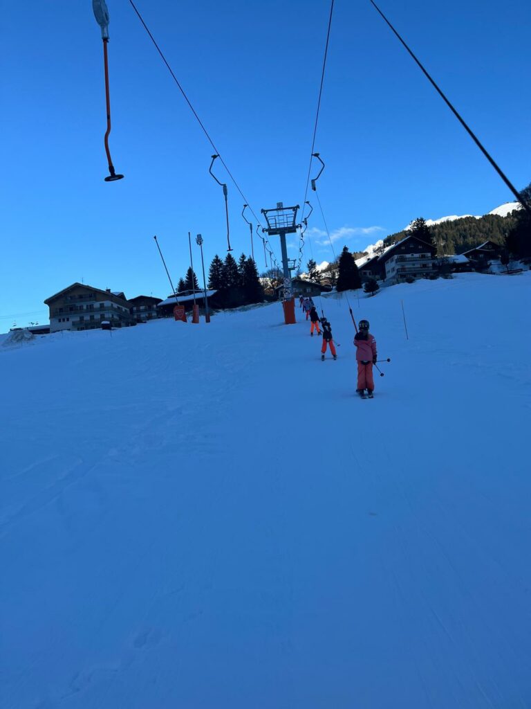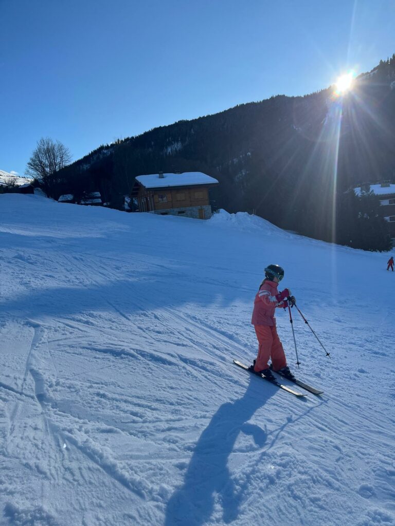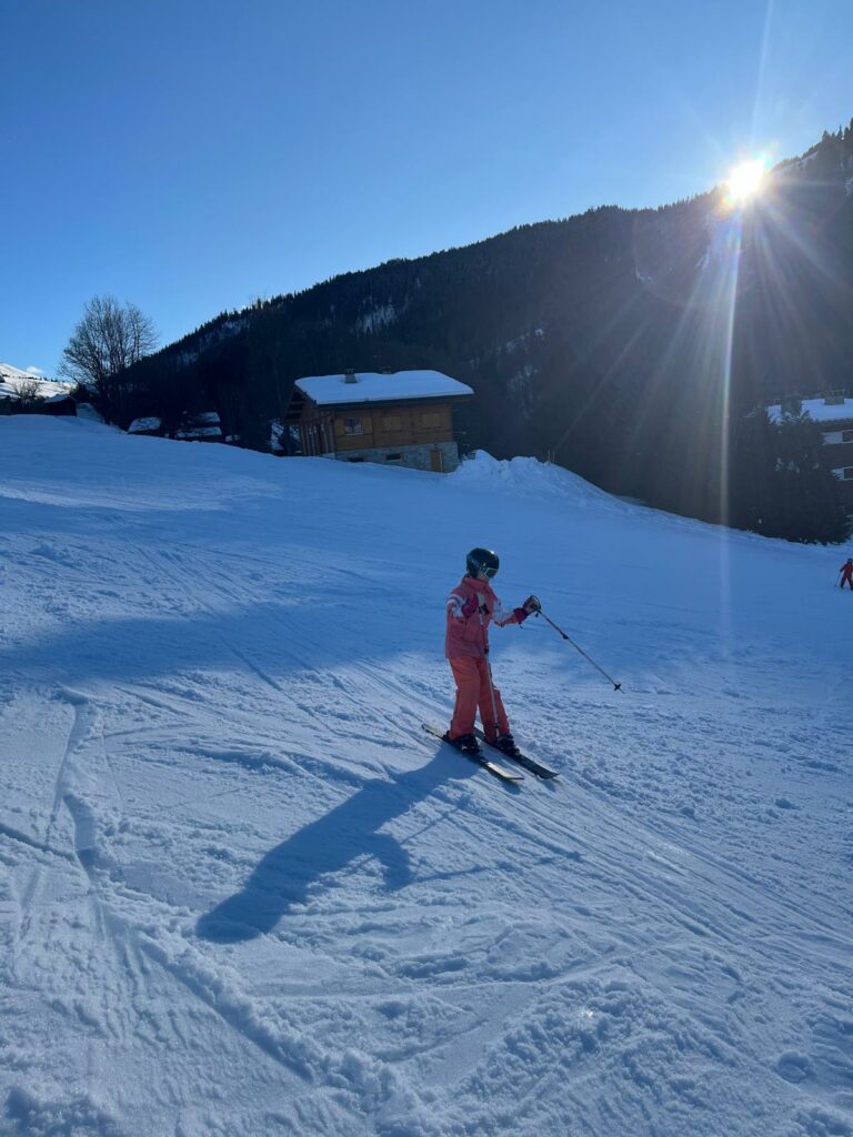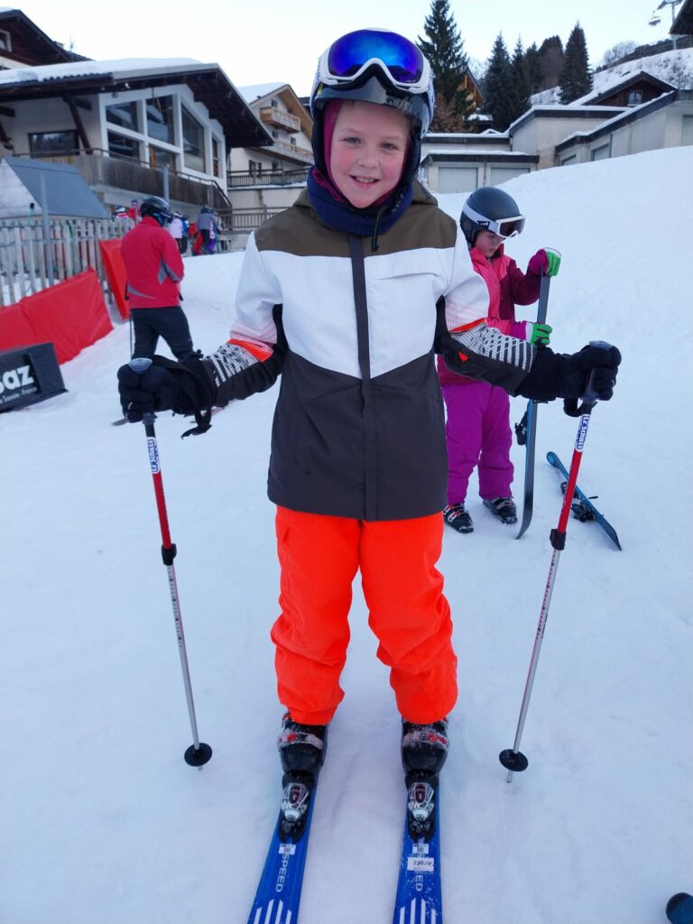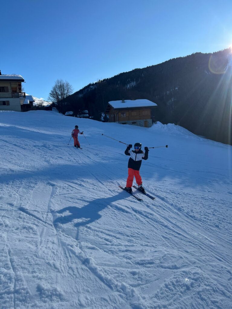 Aujourd’hui, nous avons déjeuné dans un restaurant d’altitude « Chez Arthur ». Nous avons mangé de la tartiflette et nous avons pu choisir nos boissons et nos desserts. C’était super bon! Pour nous y rendre, nous avons utilisé les télésièges. Ce matin, nous avons skié sous la neige mais cet après-midi nous étions sous un grand soleil. En rentrant du ski, nous nous sommes promenés dans un marché artisanal. Ce soir, en attendant le dîner, nous jouons et lisons tranquillement dans notre chambre.