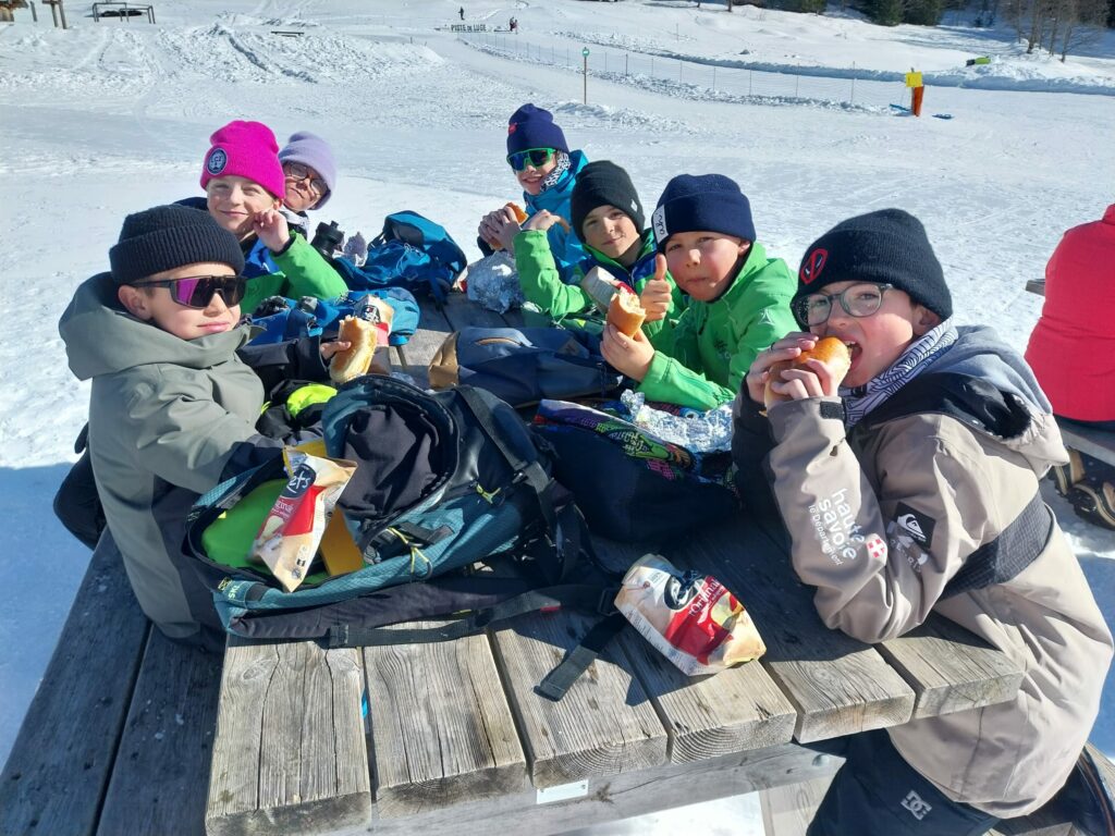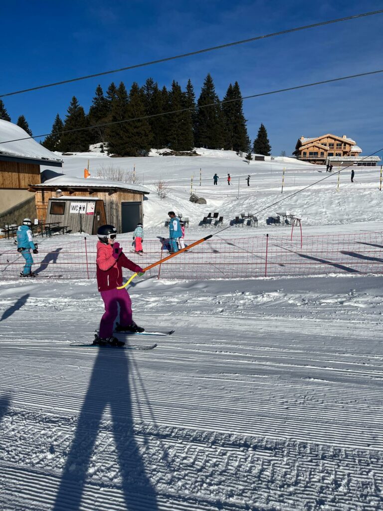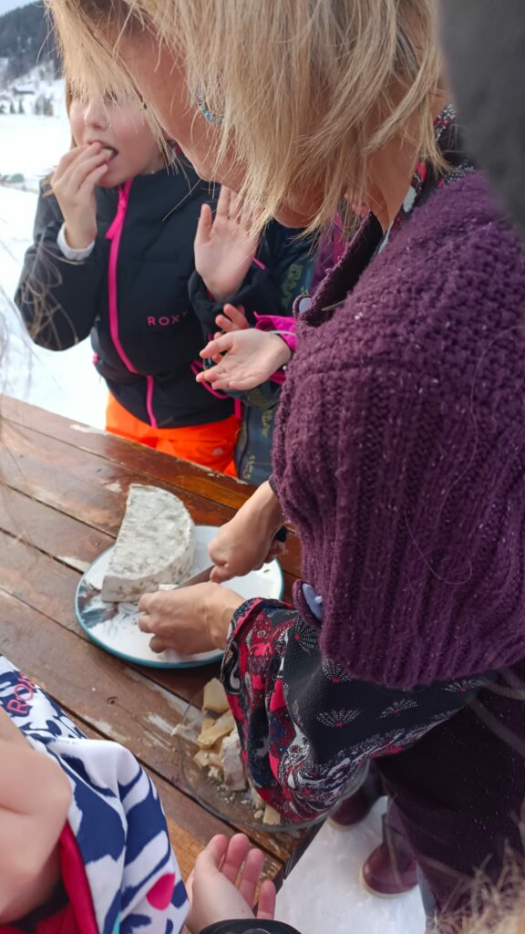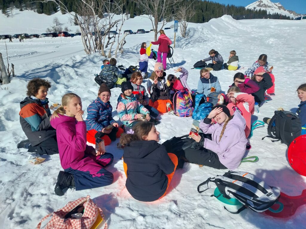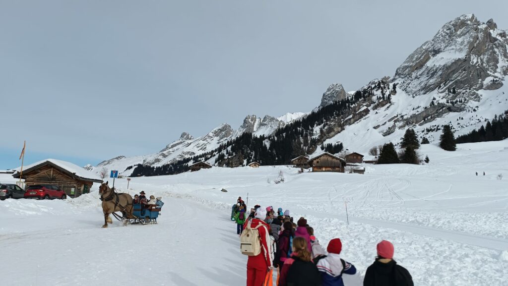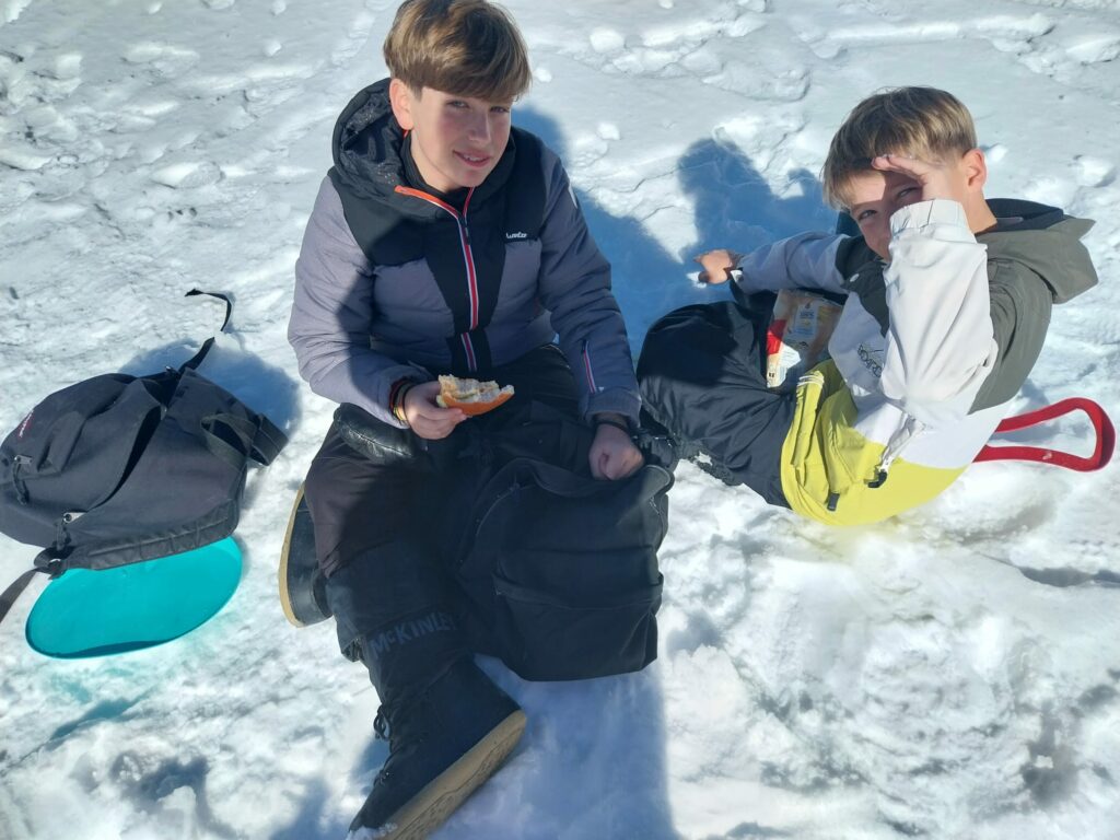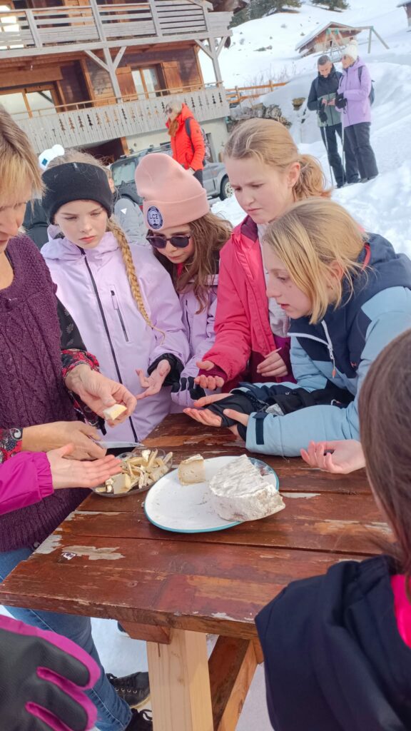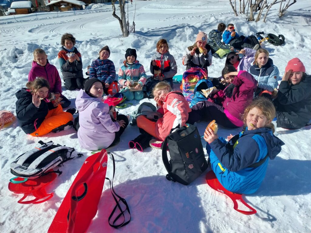 Nous avons passé une belle matinée de ski. Ensuite, nous avons pris la navette pour nous rendre aux Confins pique-niquer avec les élèves de la Clusaz. Nous avons fait de la luge ensemble et une bataille de boules de neige. Avant de rentrer à l’hébergement, nous nous sommes rendus à la chèvrerie. On nous a montré comment fabriquer le fromage et nous avons vu des chèvres et des petits chevreaux adorables. Il y avait aussi un petit chiot très mignon. Nous avons récupéré notre commande de fromage. Ce soir, un pisteur est venu à notre rencontre. Il nous a parlé de son travail, des dangers du ski. Il nous a expliqué que parfois, ils déclenchent des avalanches préventives dans la nuit pour protéger les skieurs la journée. Nous avons appris des choses très intéressantes. On vous retrouve demain pour notre dernier jour à la Clusaz.