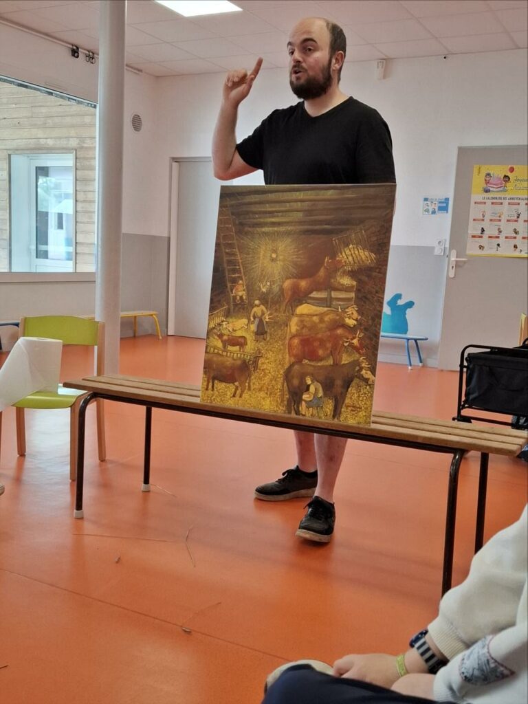 Les CP ont eu la chance d’assister à un théâtre dessiné à l’espace Terraqué, dans le cadre du festival Méliscènes. C’est l’histoire d’un enfant qui ne rentre pas dans les cases. Quelle place pour un enfant rêveur et qui passe son temps à dessiner?