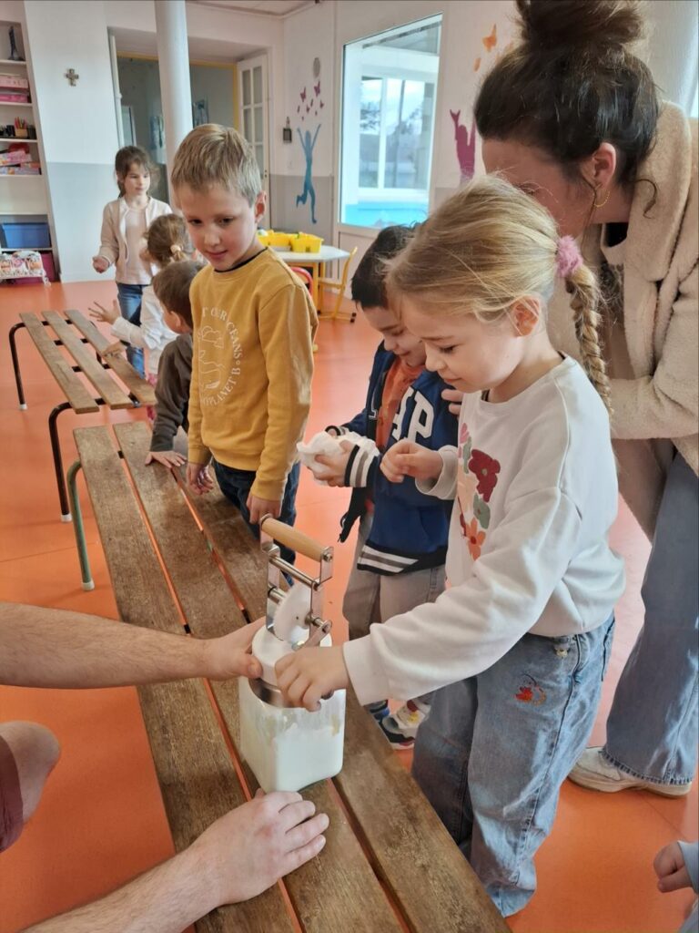 Nous avons commencé la semaine avec l’intervention de Fanny (comité de la ligue contre le cancer) sur un sujet important: le sommeil. Vos enfants ont eu la chance également d’écouter un autre intervenant (musée saint Dégan à brec’h) qui nous a expliqué comment fabriquer du beurre: