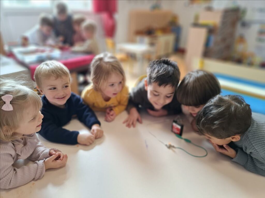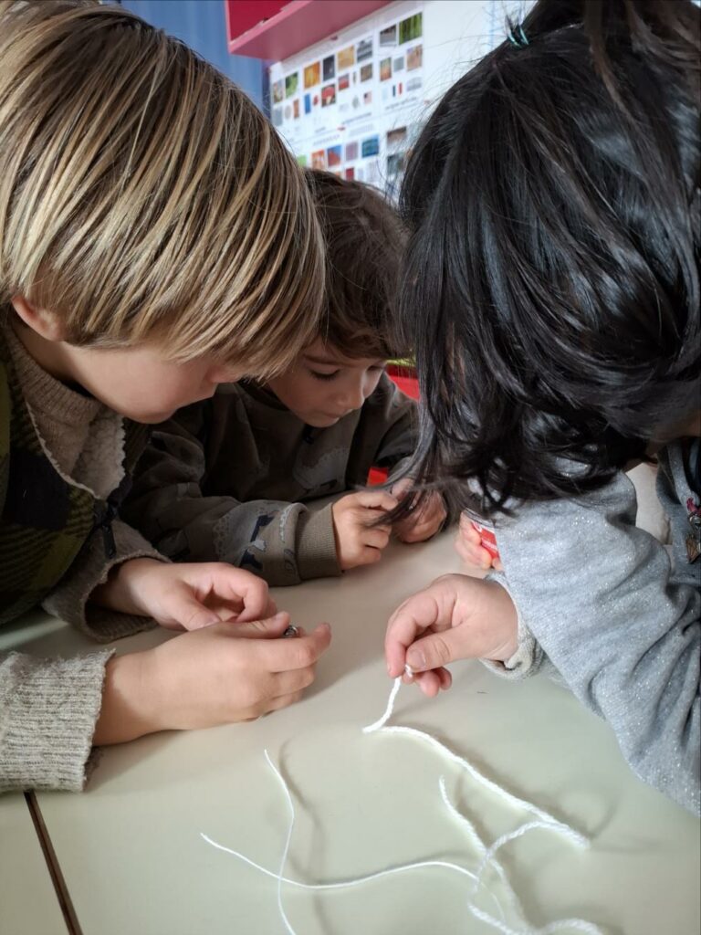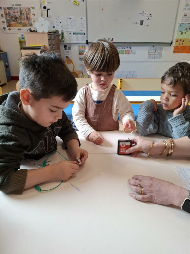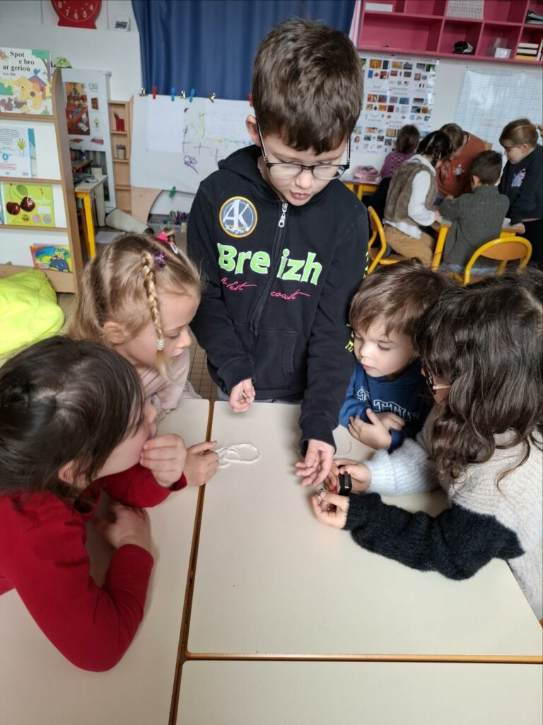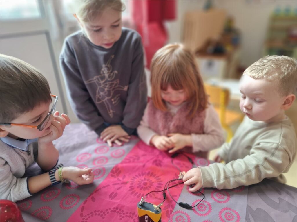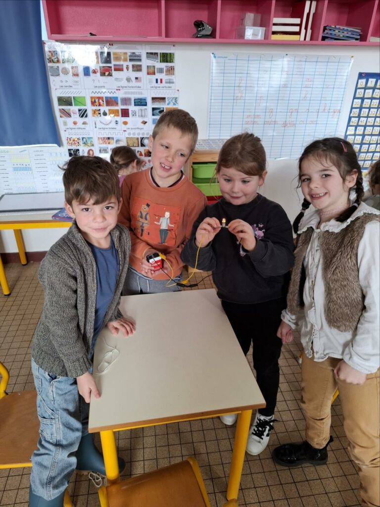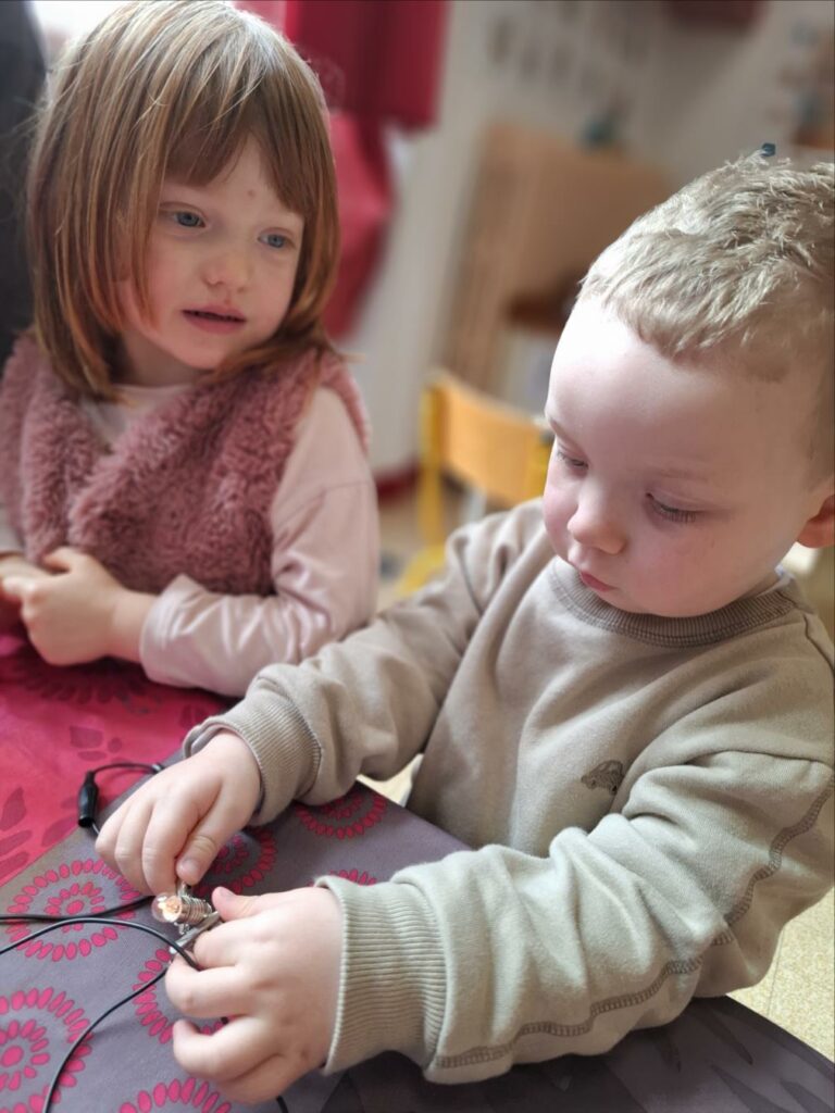 Nous poursuivons nos ateliers scientifiques: l’électricité. Comment allumer une ampoule à distance d’une pile?