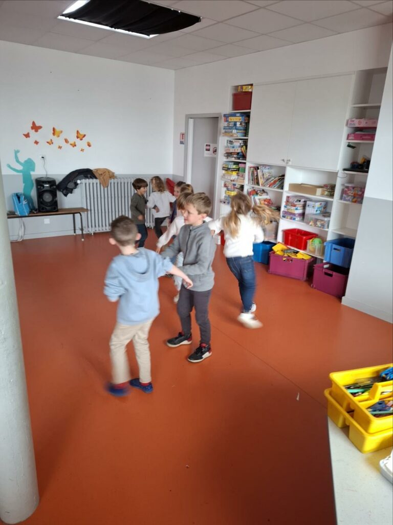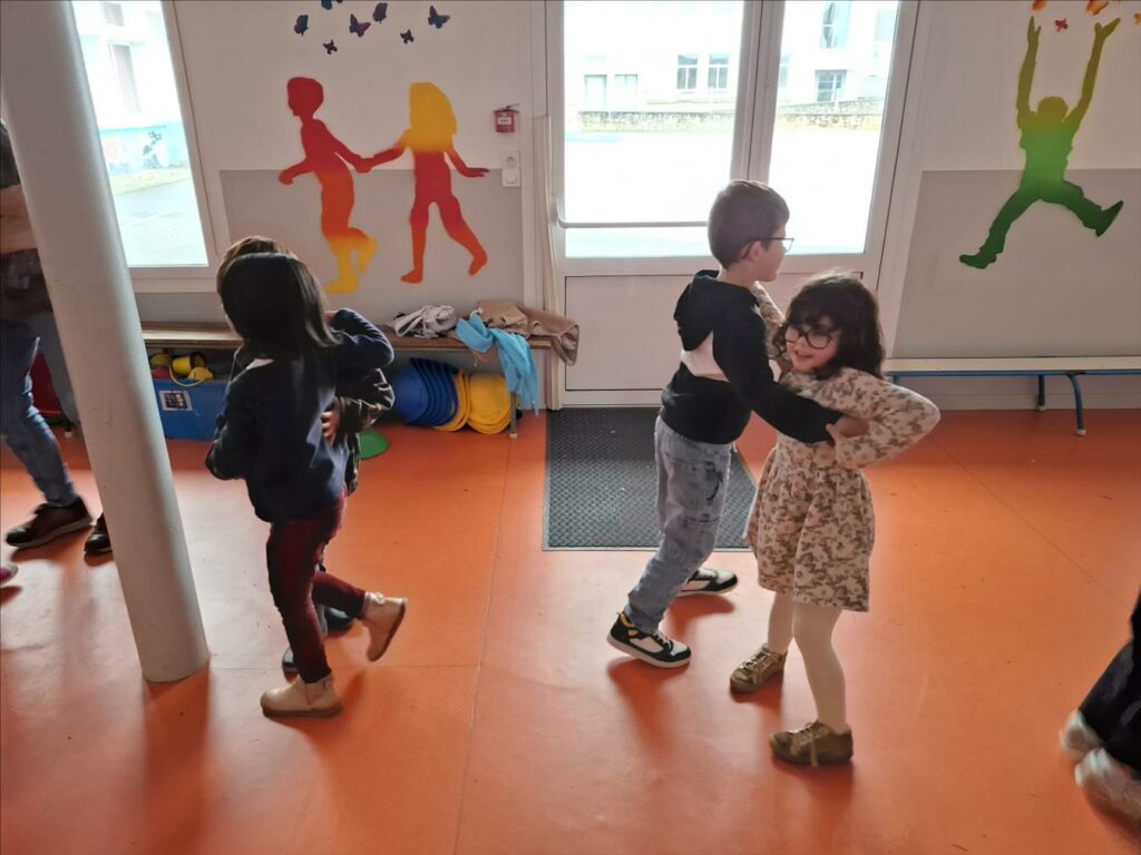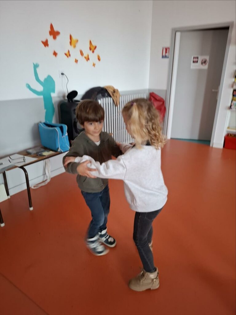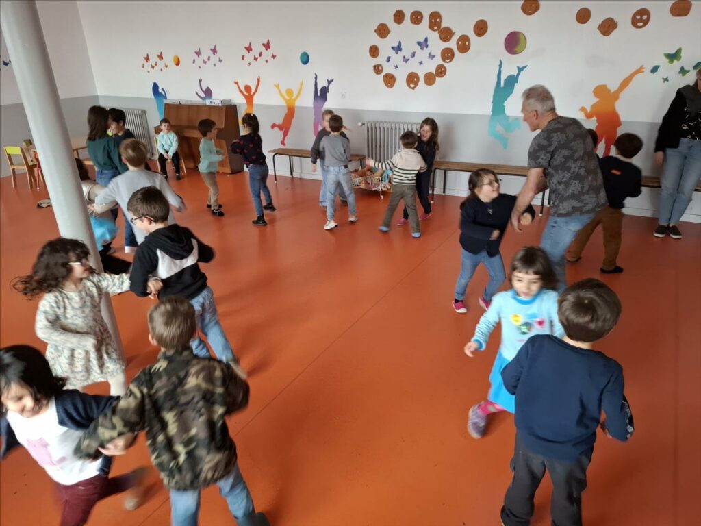 Jacky nous fait danser chaque semaine (PS/MS et GS/CP), c’est un vrai plaisir: badoise, hanter-dro, les lavandières, gibouli-giboula et trois coups de talon:
