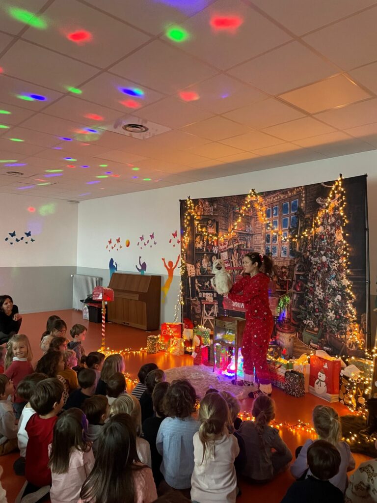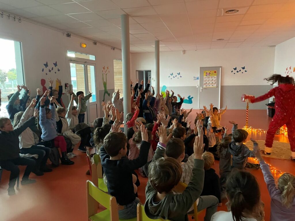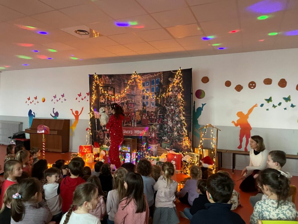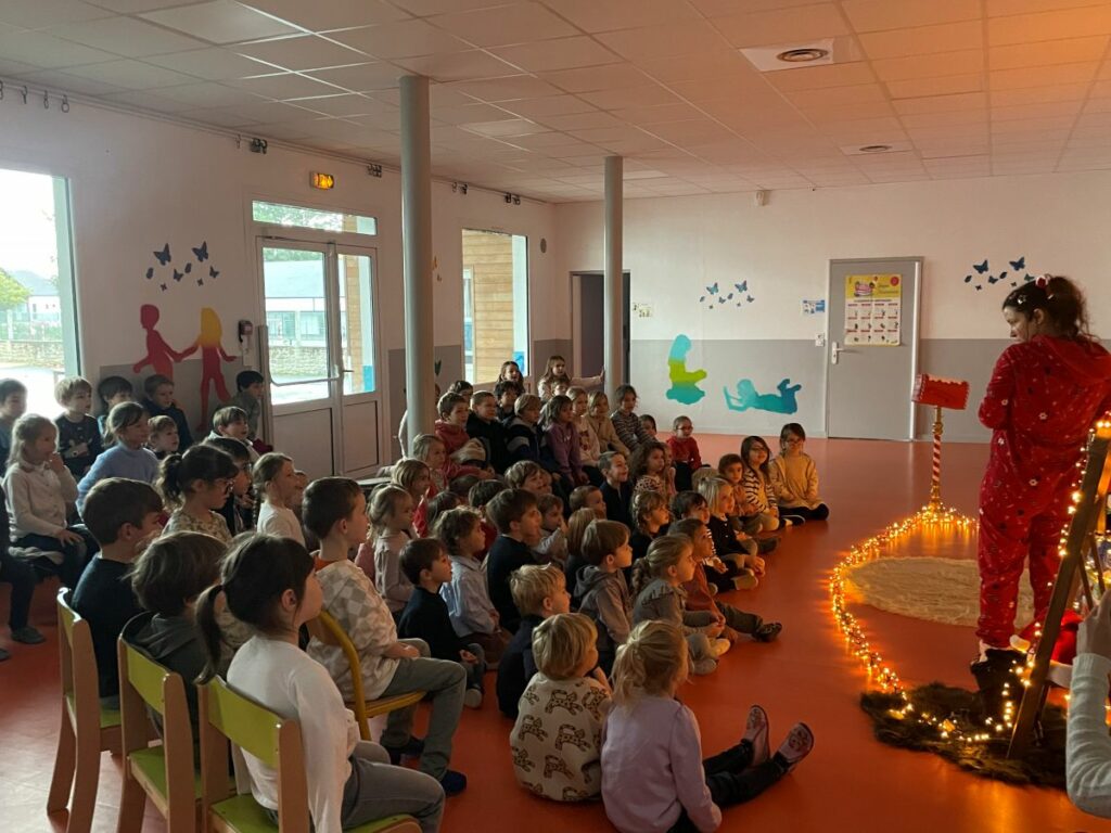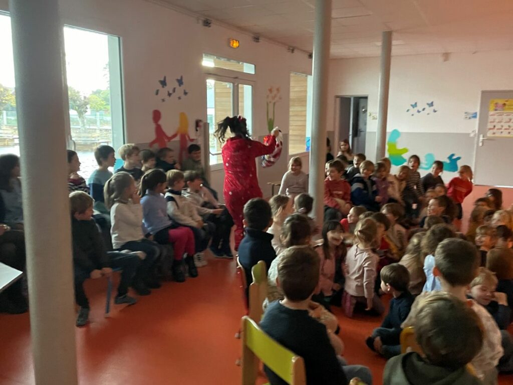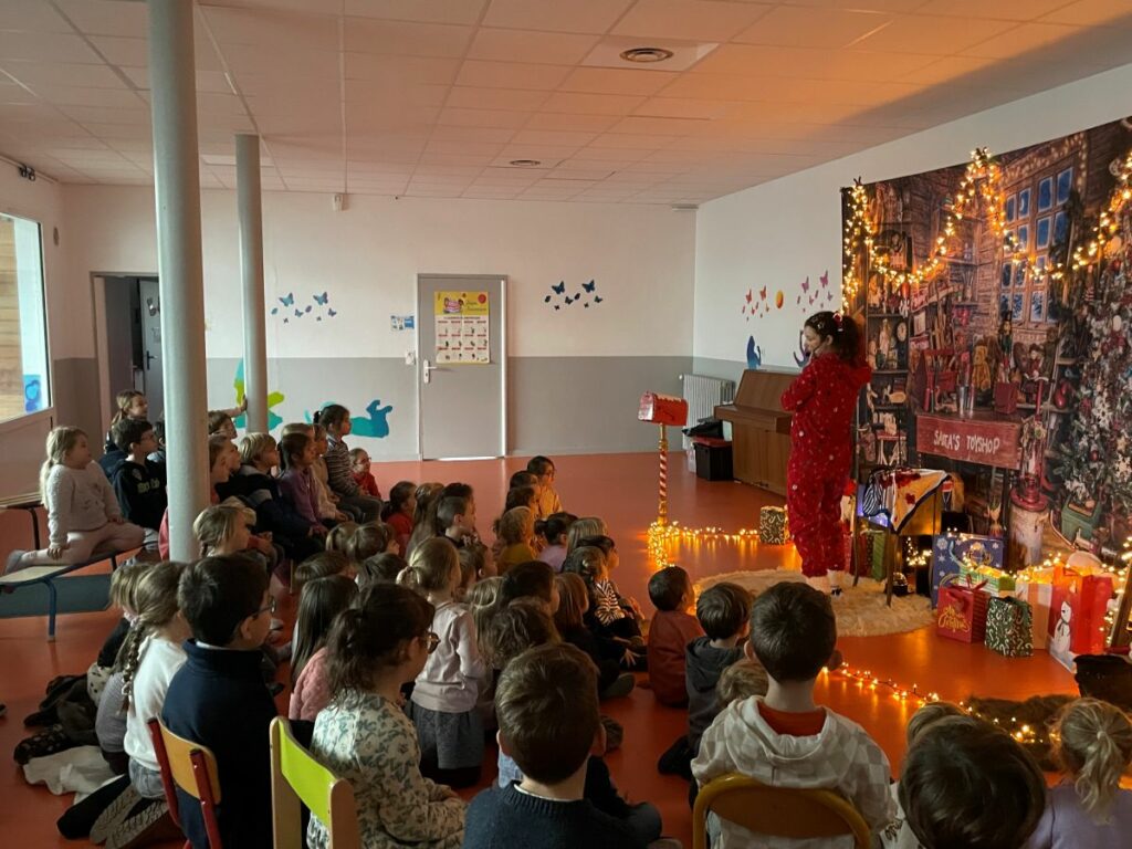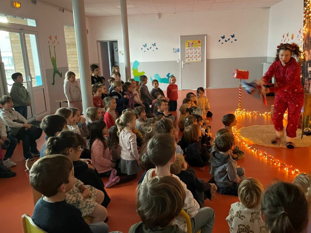 Mardi, les élèves de CP-CE1 se sont joints aux maternelles pour assister au spectacle de la compagnie fabulouse : C’est noël Zoé!