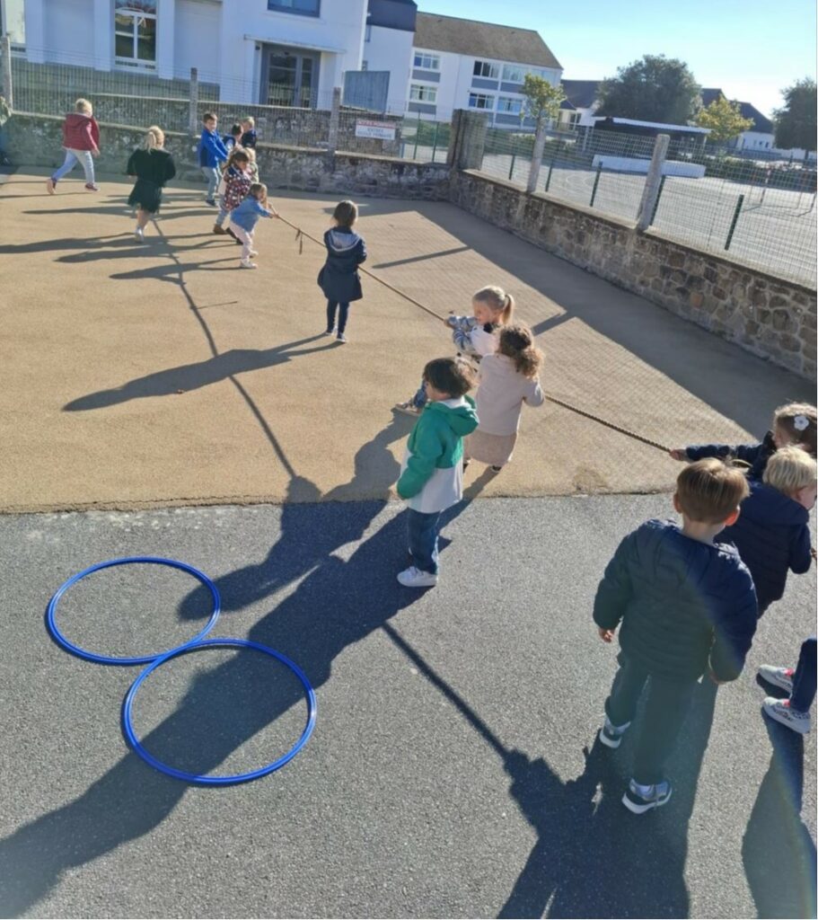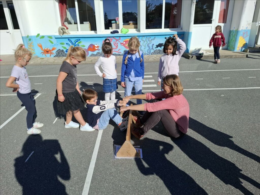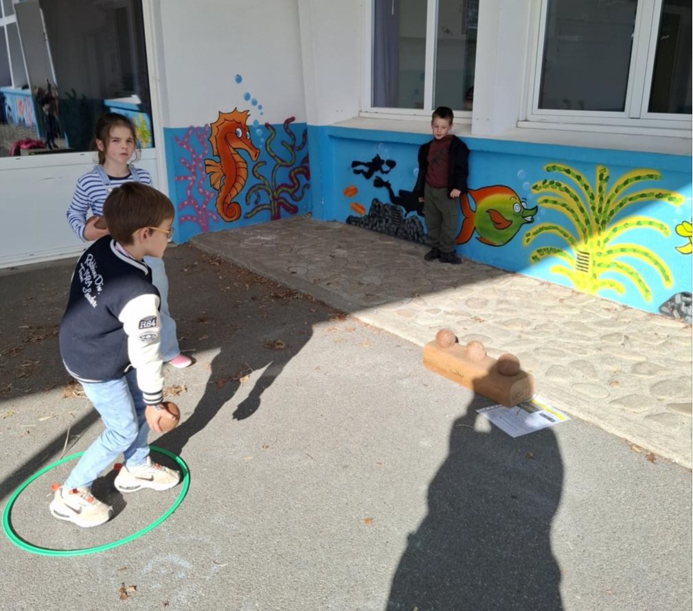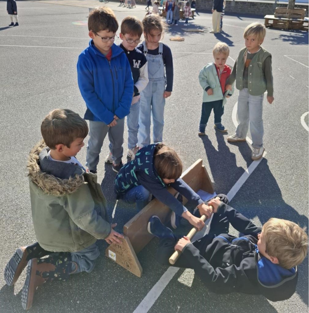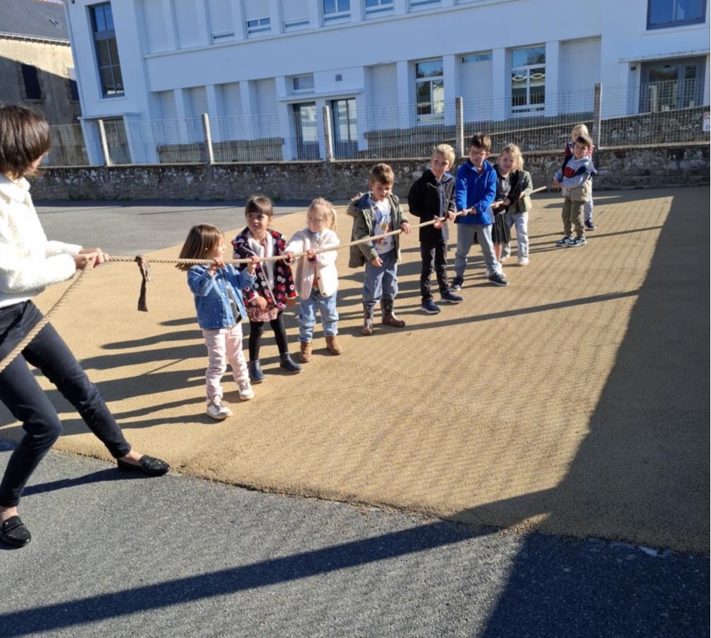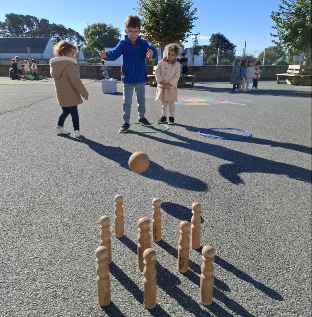 Nous avons fêté la St Michel lundi! Les enfants ont découvert des jeux bretons comme le « bazh-yod », qui a eu un franc succès. Le but du jeu est simple, deux partenaires sont assis par terre, face à face. Il s’agit d’essayer d’arracher le bâton à l’adversaire, ou encore de tirer celui-ci vers soi. Le « bazh yod » (ou bâton à bouillie) tire son image de la préparation de la bouillie d’avoine qui nécessitait l’utilisation d’un bâton court et solide.