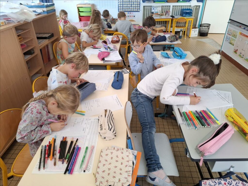 L’après-midi, pendant la sieste des plus petits, les GS observent comment les CP calculent en mathématiques: