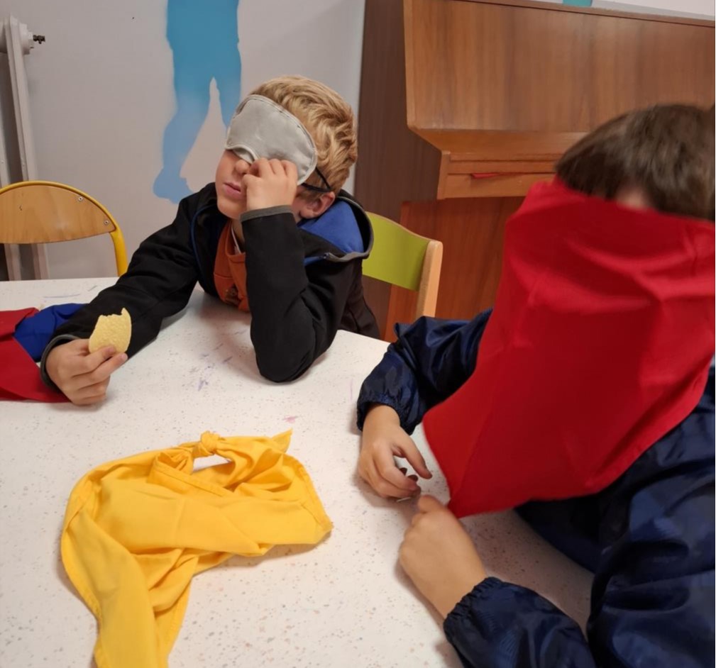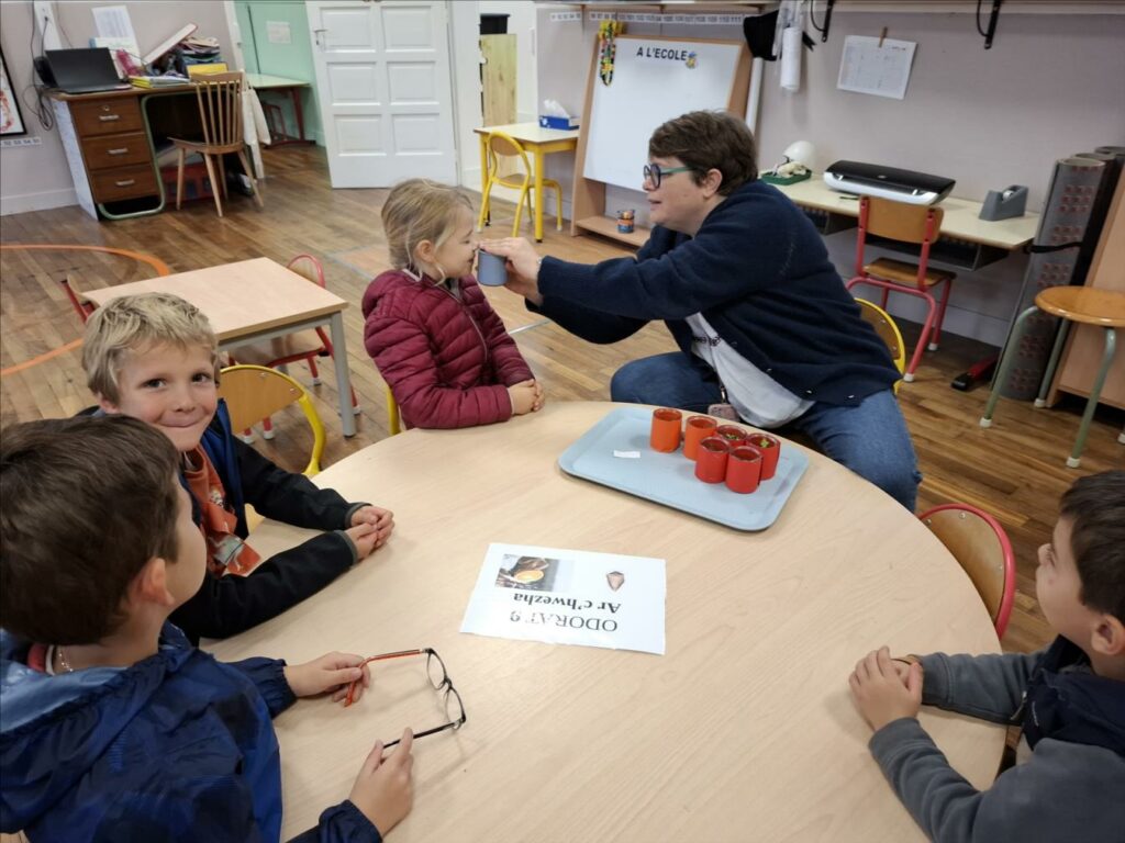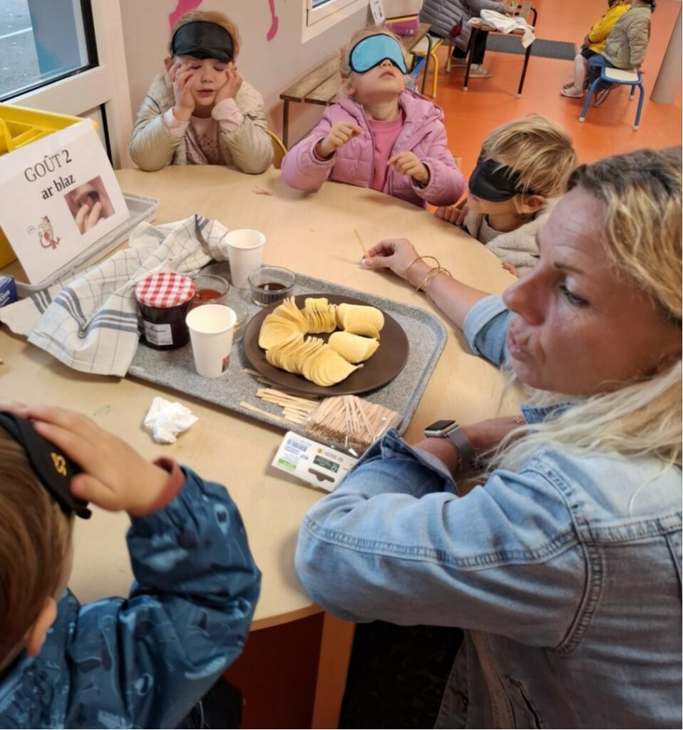 Vendredi, dans le cadre de la semaine du goût, les enfants ont participé à différents ateliers sur les 5 sens. Merci aux parents accompagnateurs.